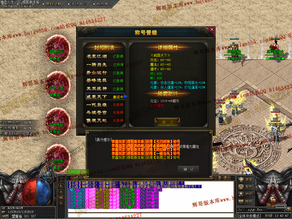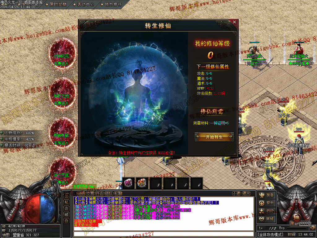 【游戏介绍】:各种活动尽量参加,Q群礼包必领,技能强化,转生一个不要落下,尽量均衡!各种材料用处效果非常牛!