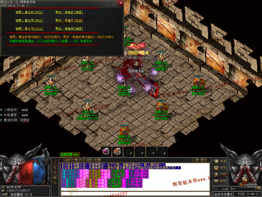 【爆率介绍】:本服共12套装备·小怪有爆率但是很低,建议大家蹲守BOSS点,副本·世界BOSS必须参加!