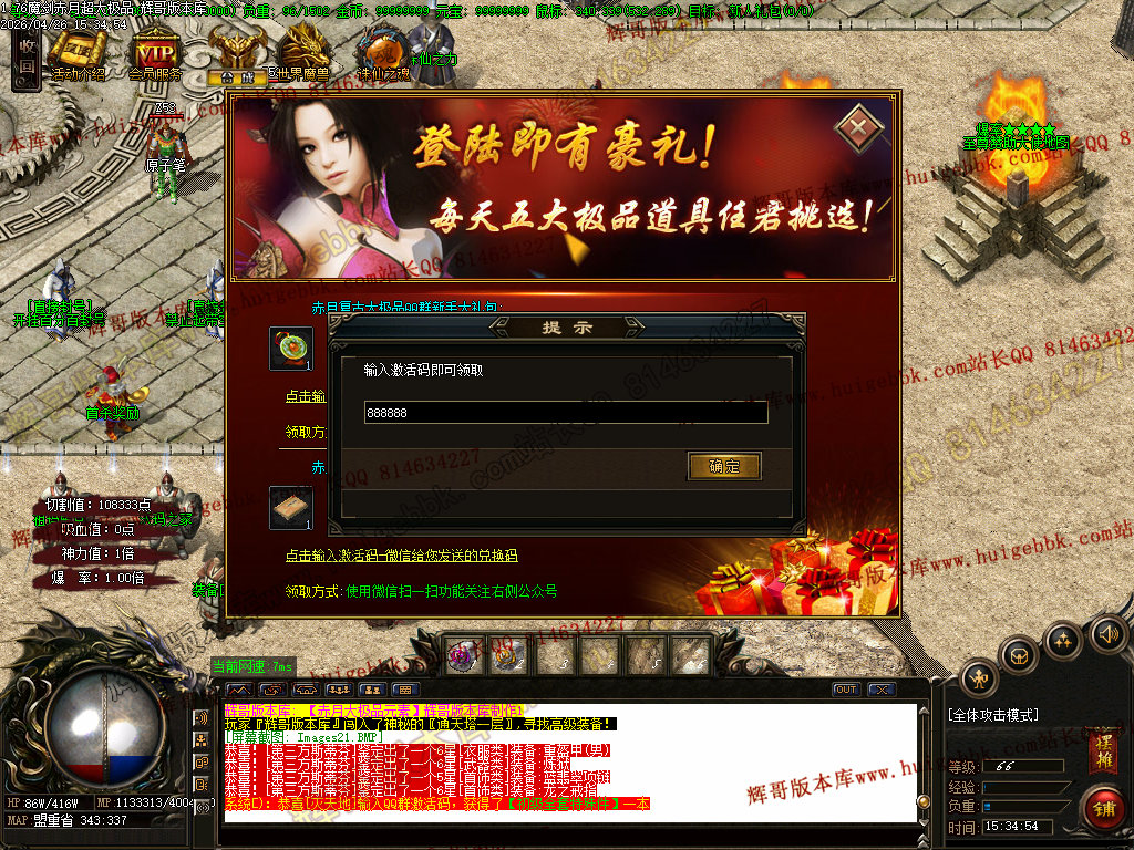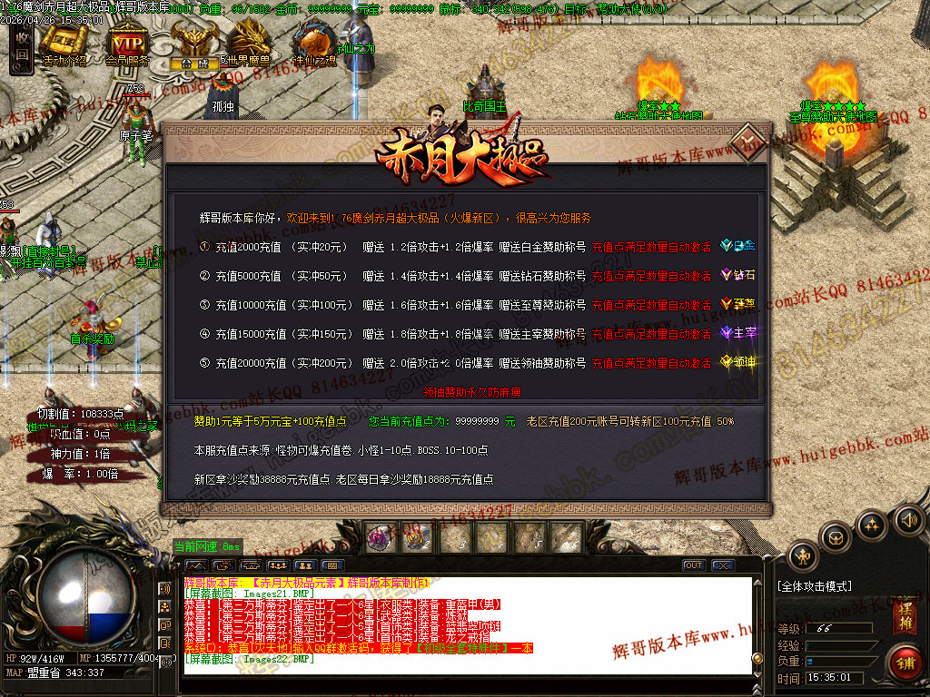 【1.76赤月大极品】进入地图的机会,只能靠(地图入场券)增加次数,(地图入场券)每个怪物都有爆出!