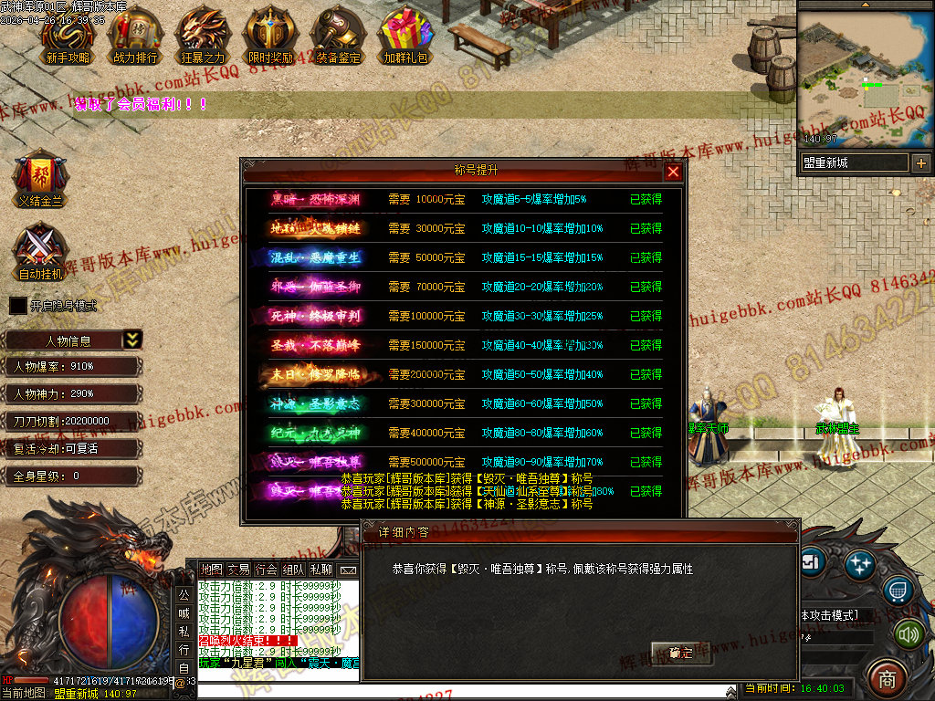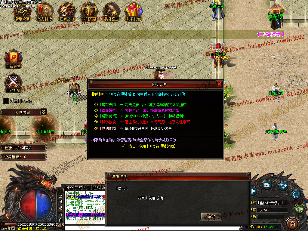 如果发现影响开区的大问题,可联系站长进行免费修复,细节问题自己处理不负责细节问题,