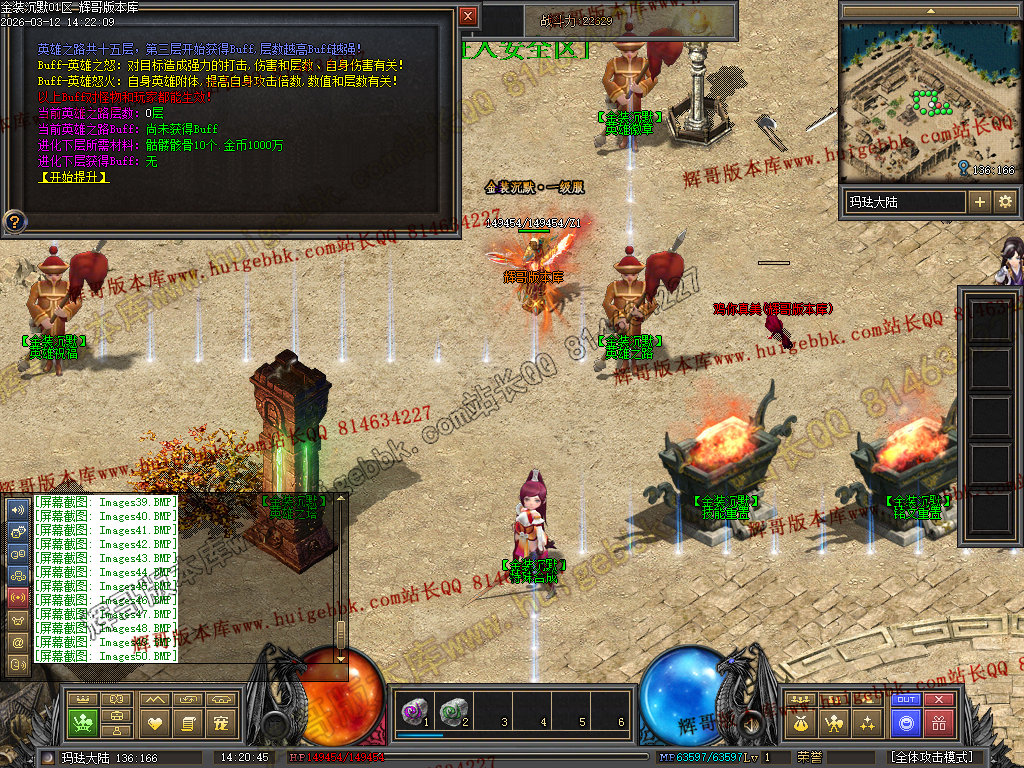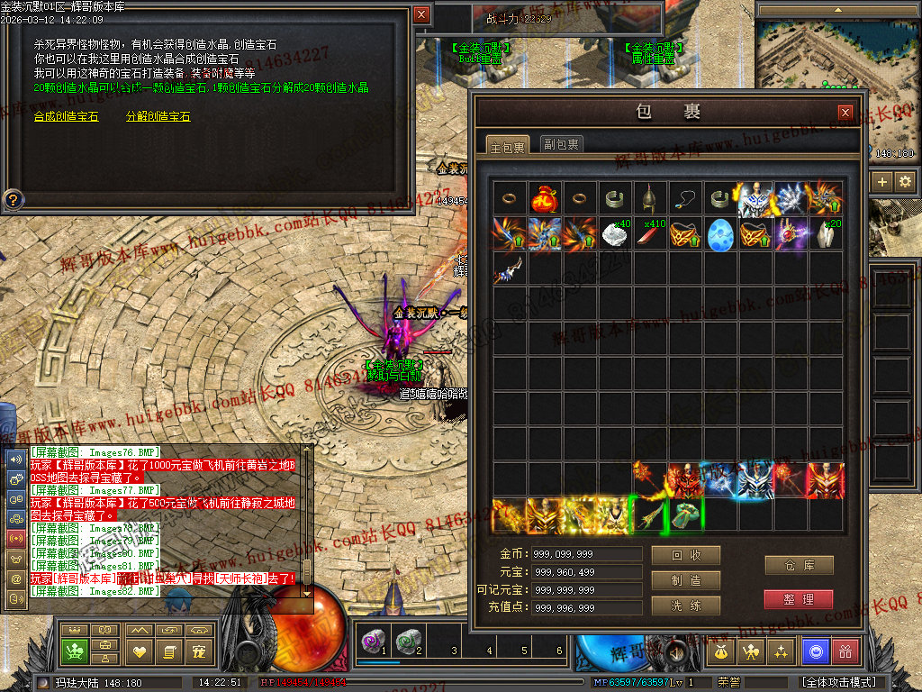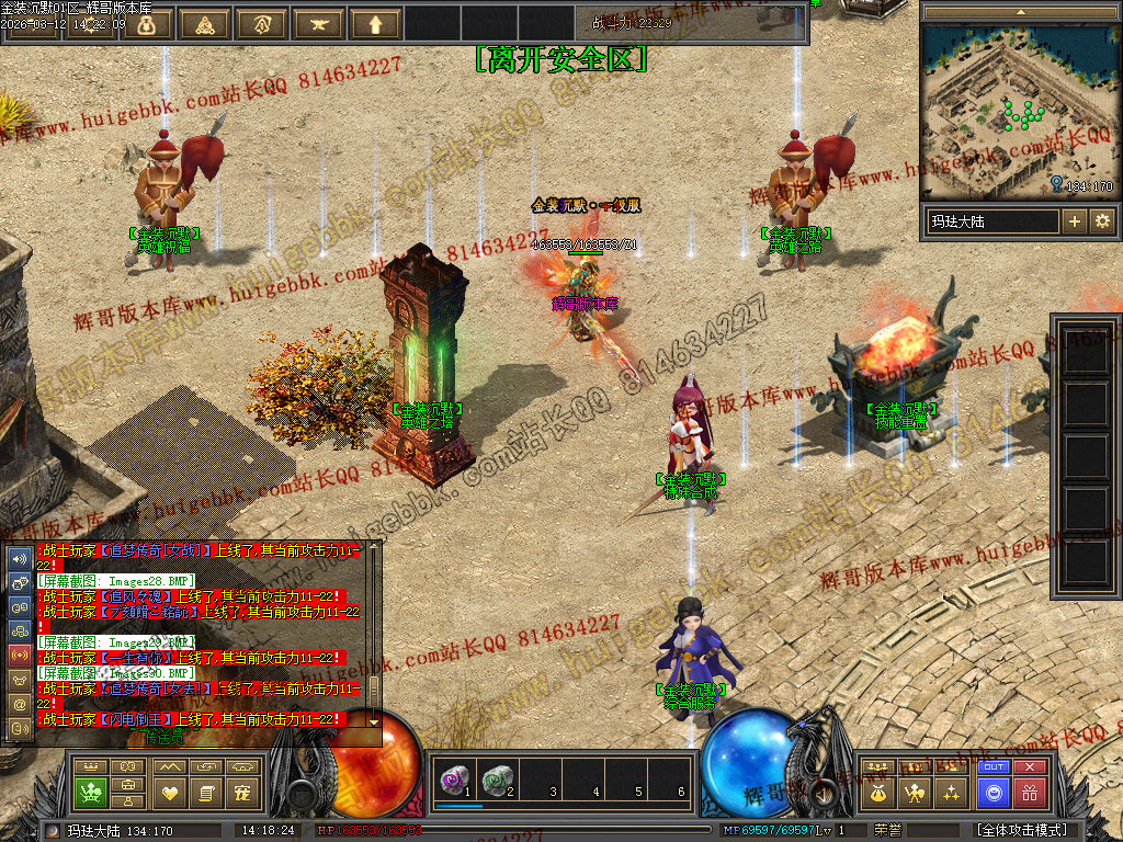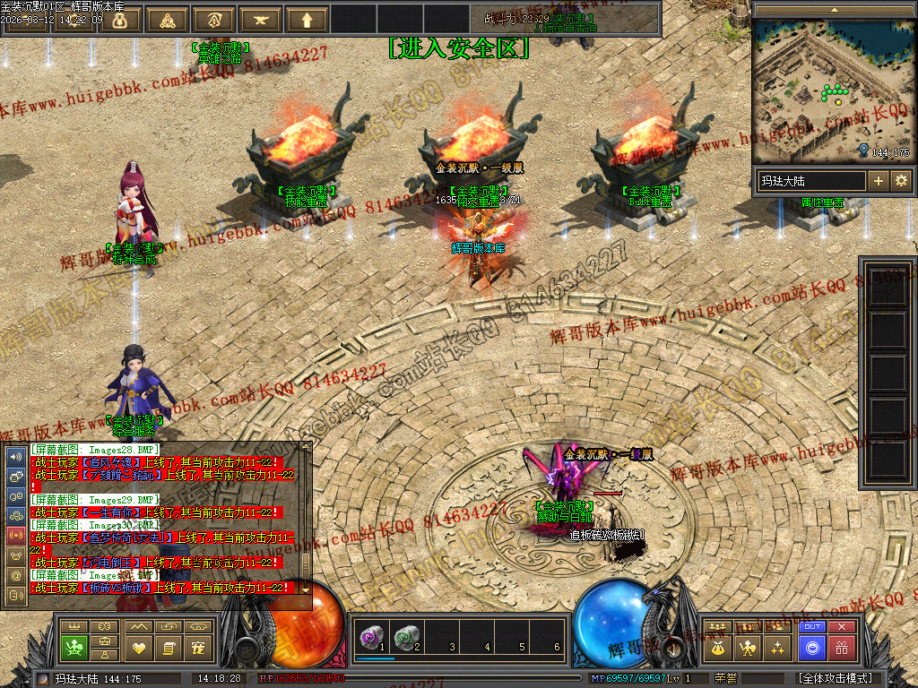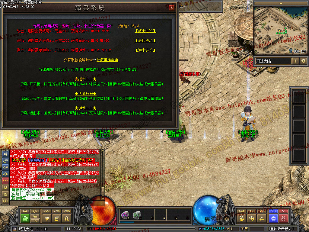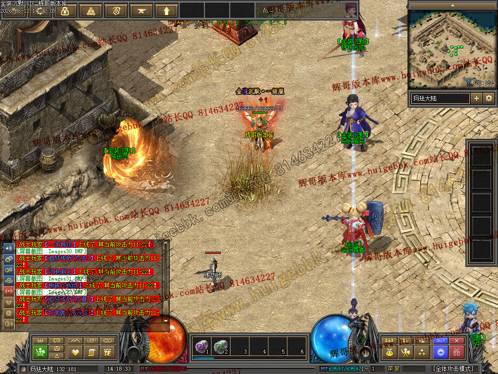 战士还有一种另类玩法 就是堆高攻击 带暴击 疯狂 幸运BUFF 单纯的靠四级烈火秒杀别人。 土豪喜