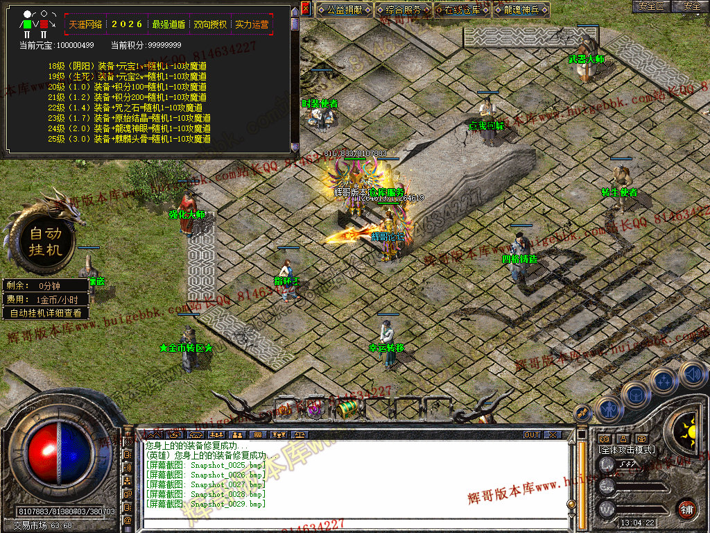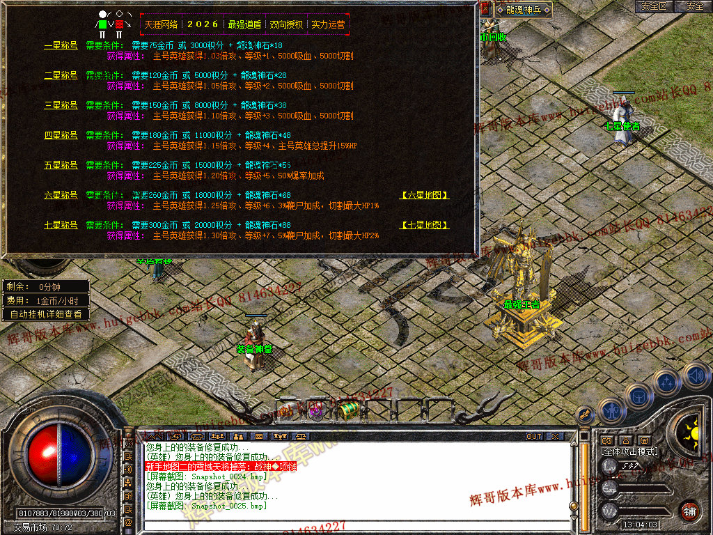 注:会员服务一键单满1200金币或240灵符(1套1.0四格),一键双满2400金币或480灵符(2套1.0四格+传送功能)功能方便老板节省时间可直接下图撸怪