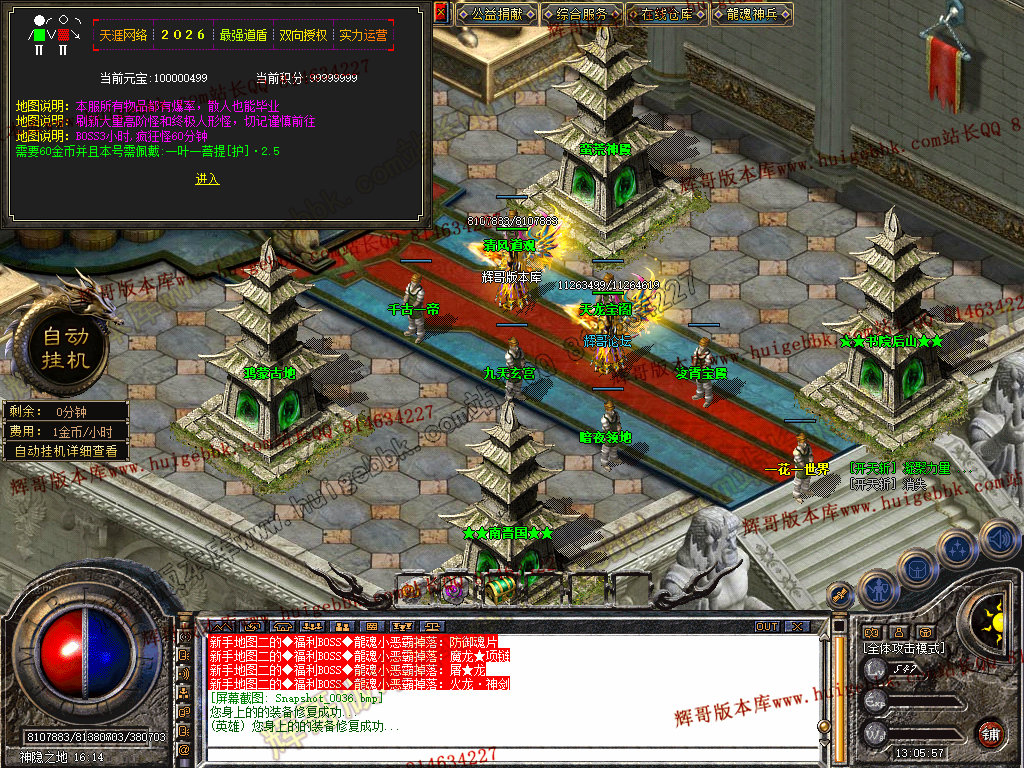 九天肉怪:120-240分钟(转生18 20转,世外桃源2层,二大陆魔幻之境9层开始,诅咒之境9层开始,神圣之境9层开始,诅咒殿堂1234,18转金币塔,三大陆所有图)