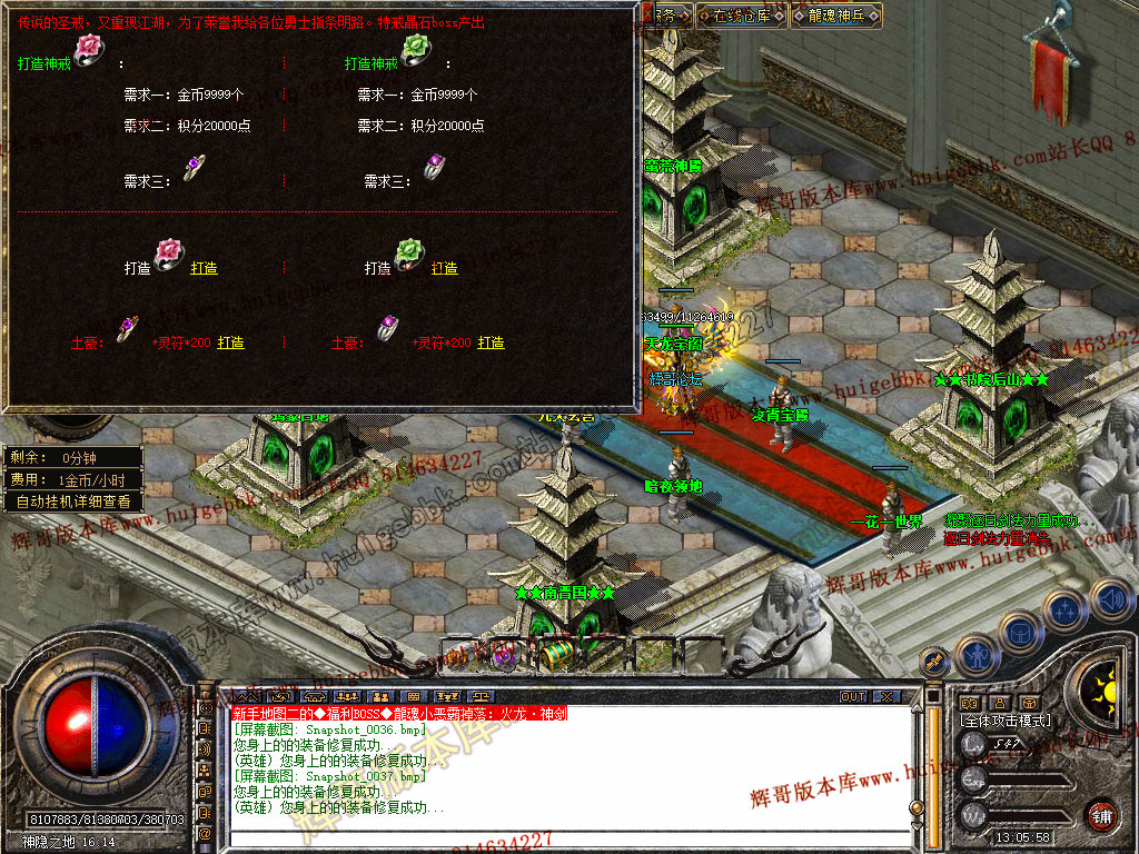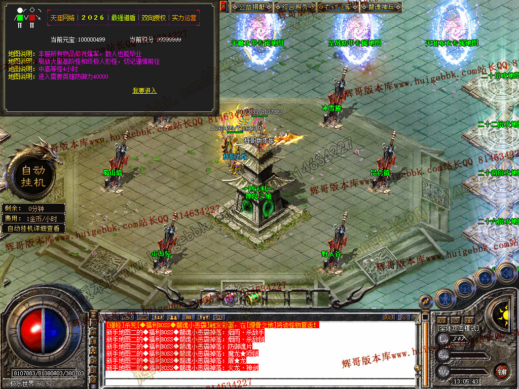 终极肉怪:240分钟(刷新地图:诅咒殿堂4,九重天17层开始,龍魂九天塔,18转金币塔,三大陆高级地图)
