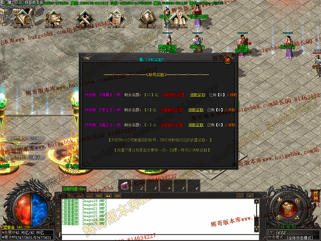 首充15 元 ,上线后还是和散人差不多领取Q群礼包,然后升级一下称号,领取个12转就散人福利地图进行撸怪;