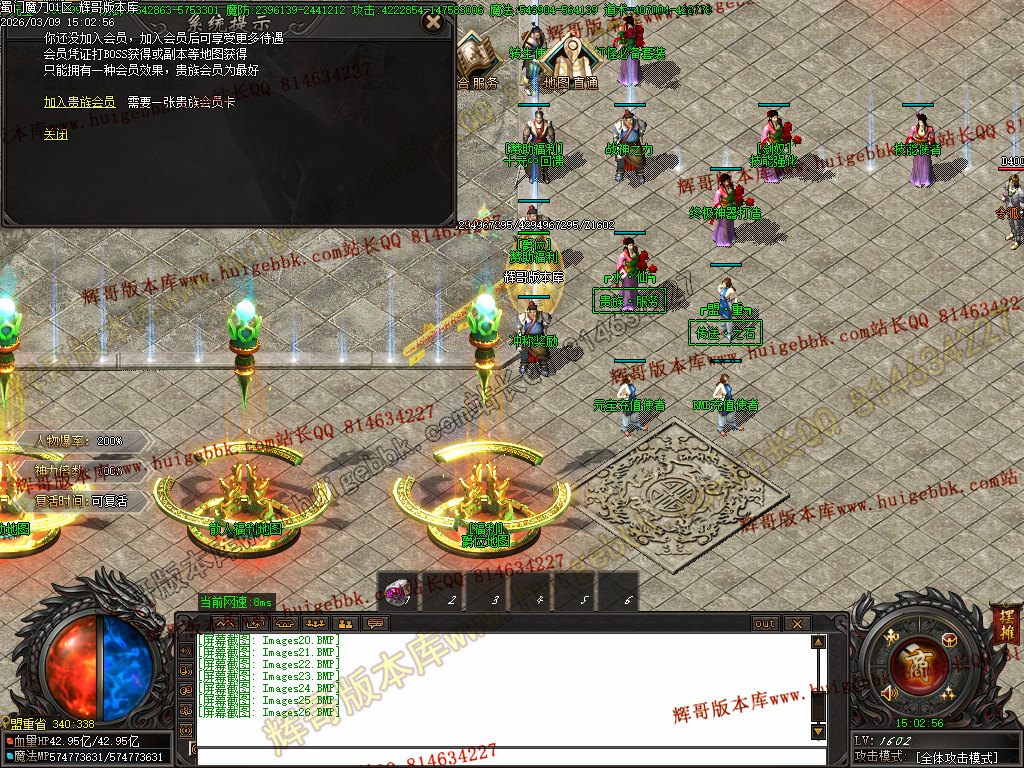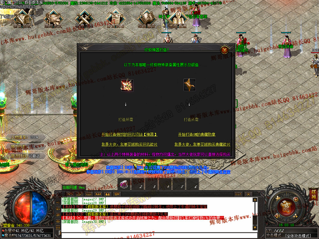 然后在土城买符文合成九阶符文,货币不够合成九阶的话 ,八阶也行,然后就去土城左边BOSS放把已刷新的BOSS一打遍;