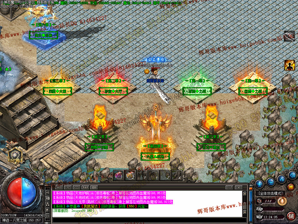 杀猫逐鹿出新村 斩妖除魔入盟重 近观绿涛汇碧海 远眺青山有苍松