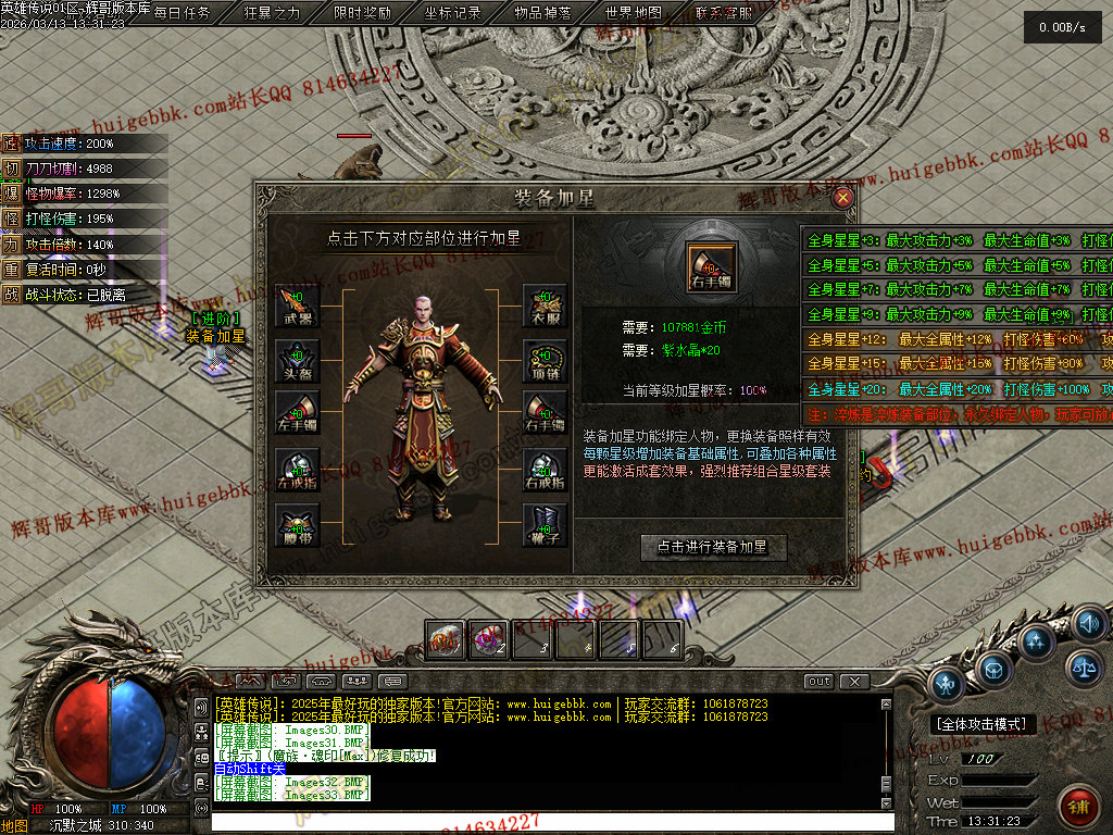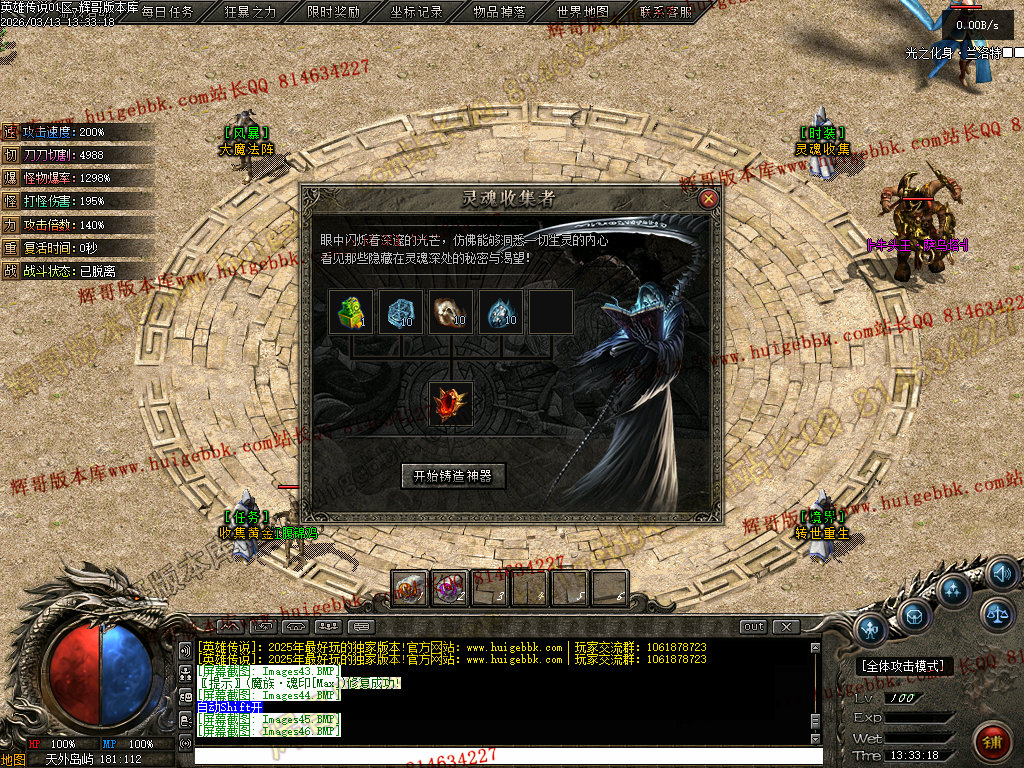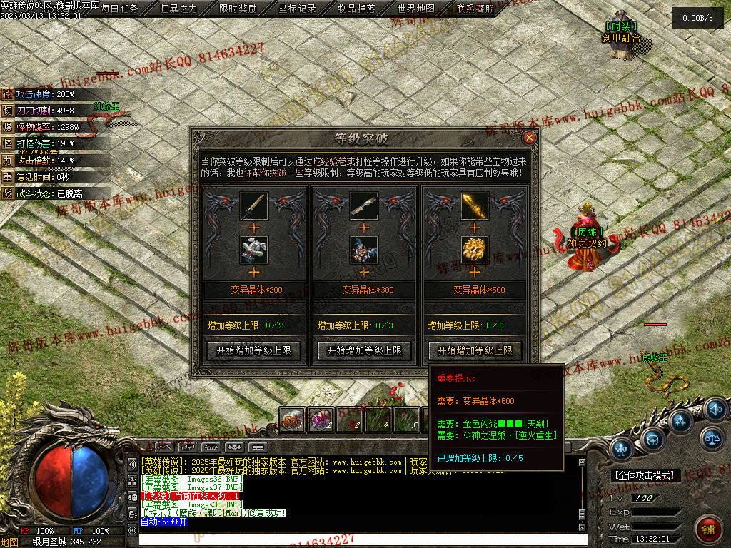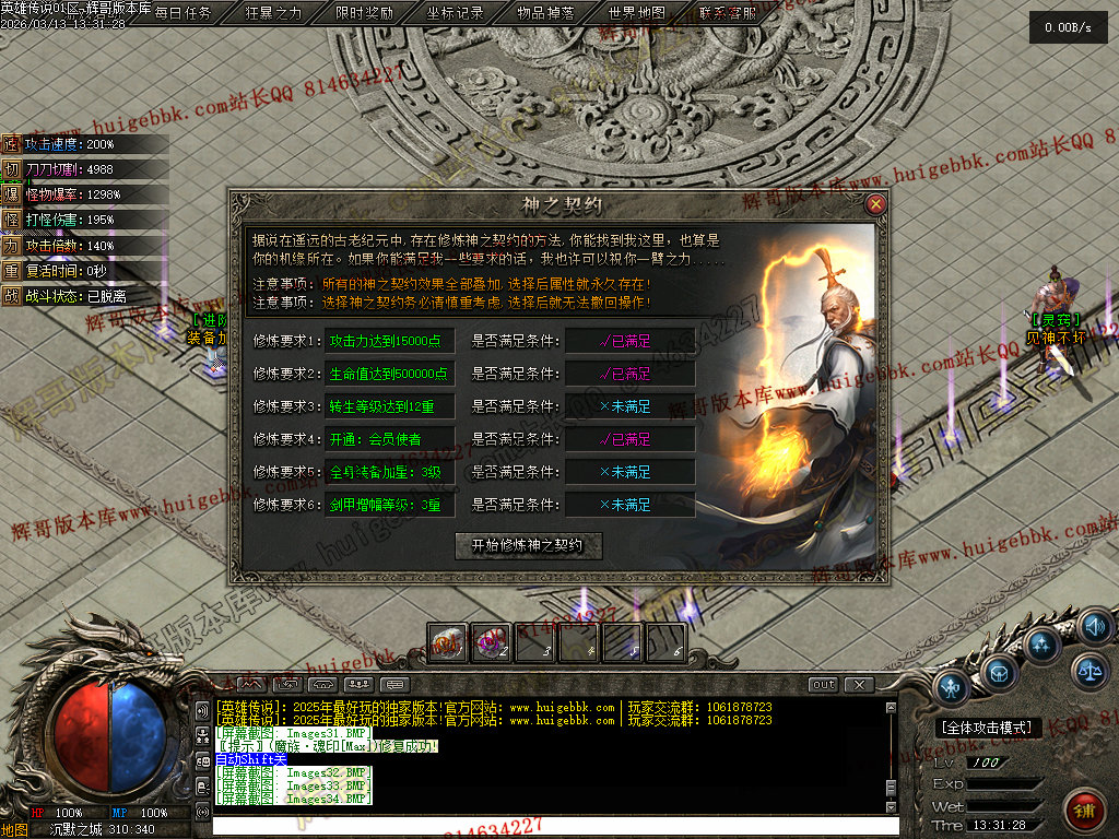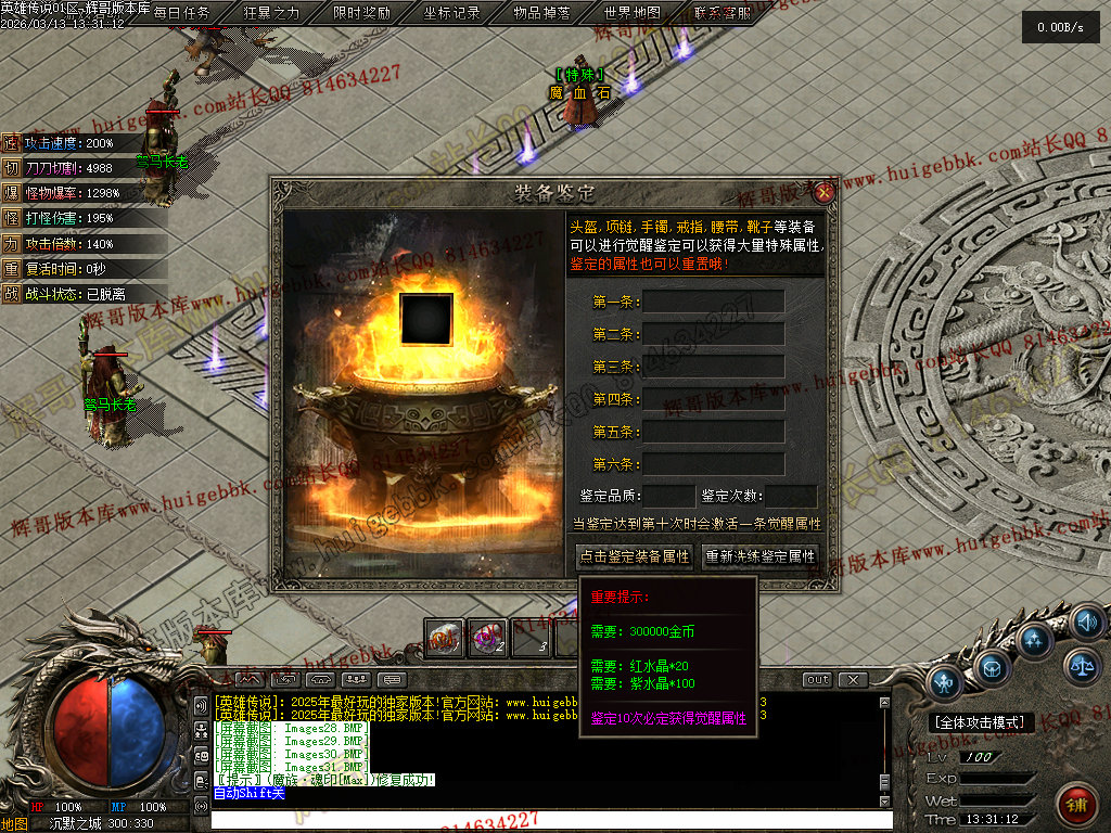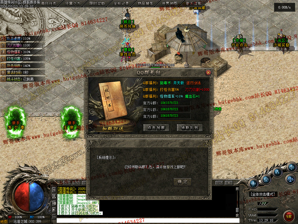 会员礼包:刀刀切割+5000、打怪爆率+50%、回收比列+50%、攻击速度+10%、