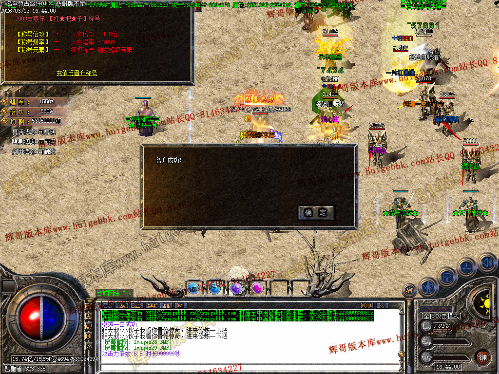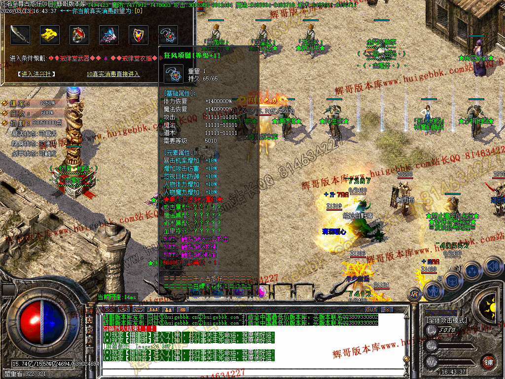 装备增加等级: <最高等级升至5023级.终极盾牌+6级.终极剑甲+4级.项链+3级 <最终等级最高可达到5023级