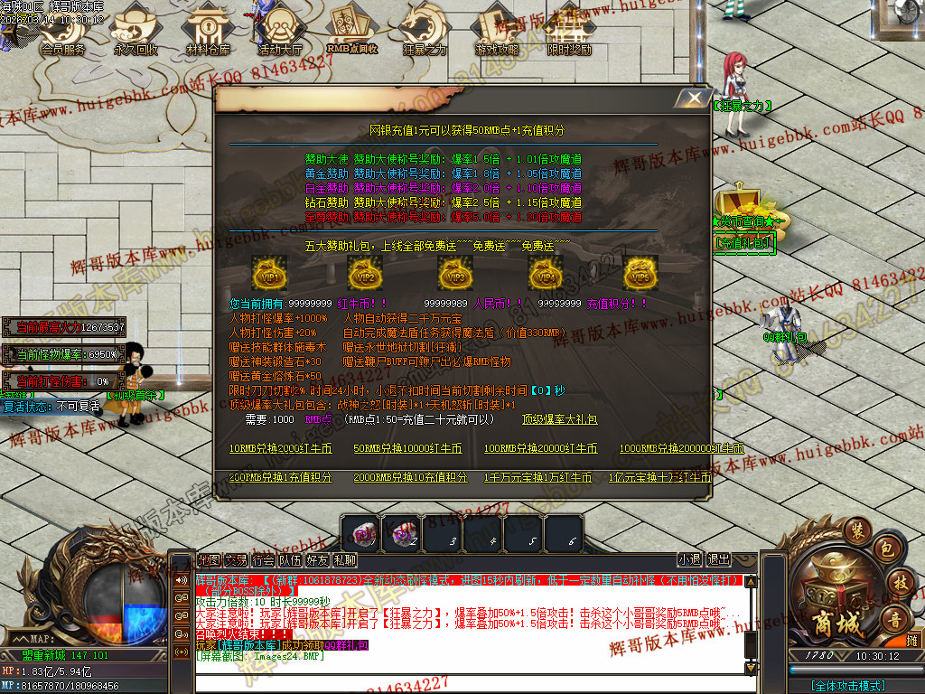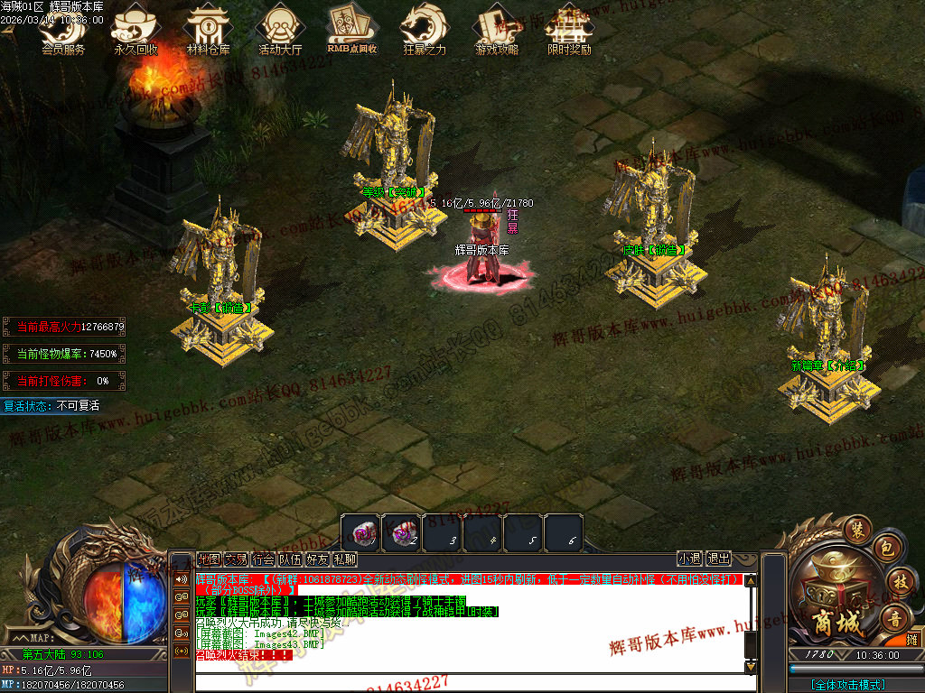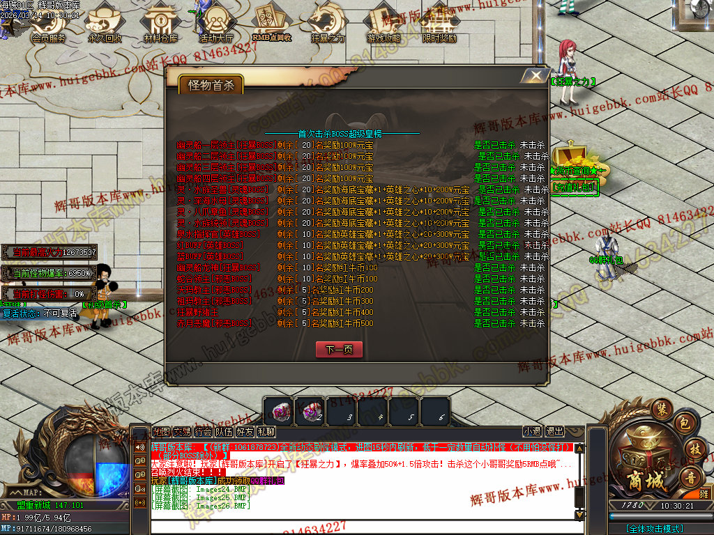 4.根据战力提升情况进入后续地图打宝!杀怪拿首杀获得消费点,红牛币,元宝!