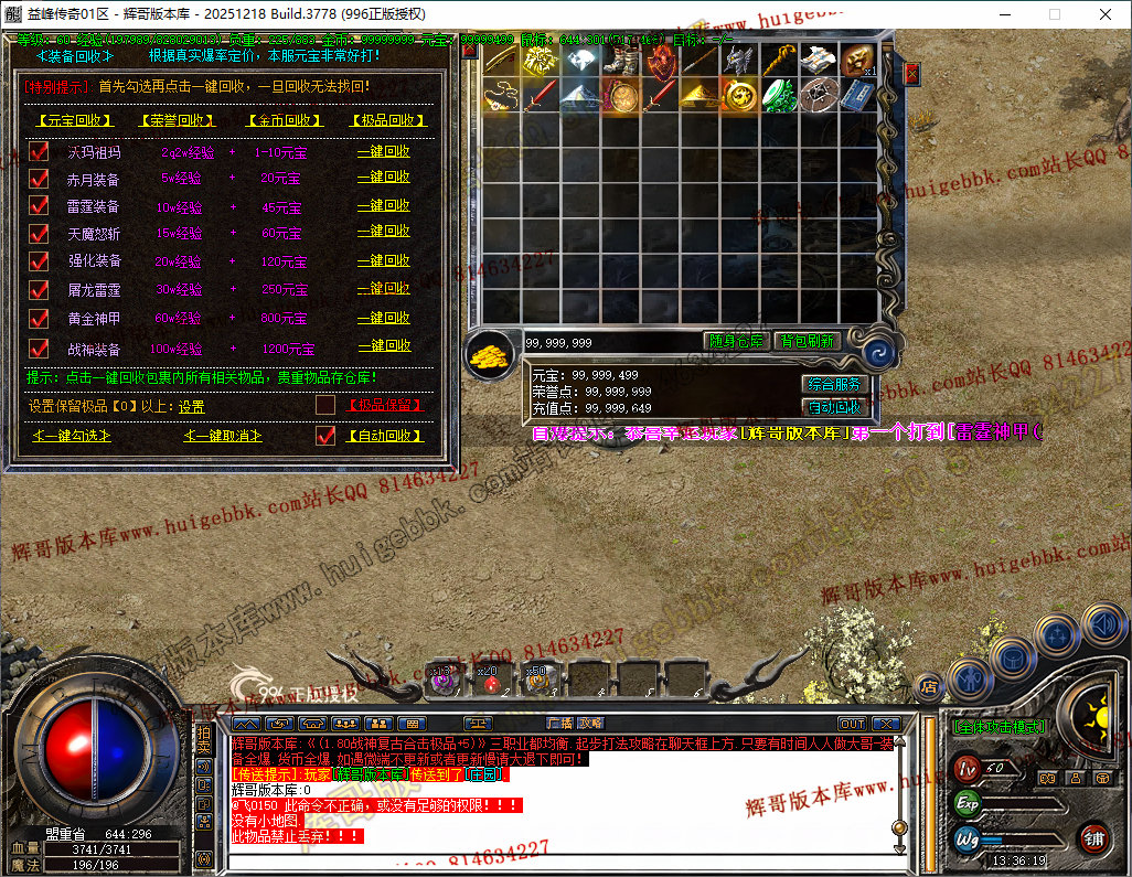 如果发现影响开区的大问题,可联系站长进行免费修复,细节问题自己处理不负责细节问题,