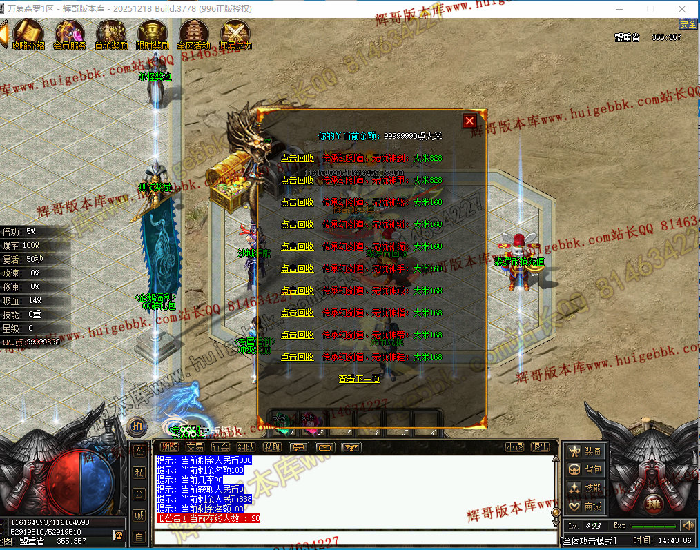 如果发现影响开区的大问题,可联系站长进行免费修复,细节问题自己处理不负责细节问题,