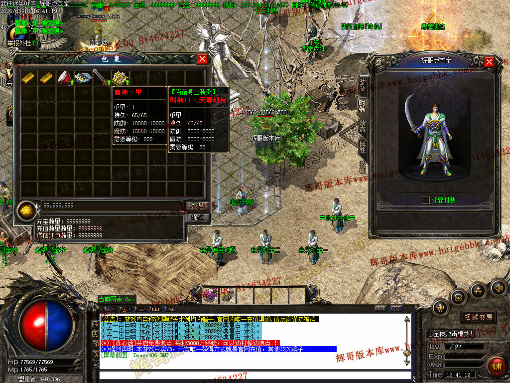 <版本介绍>本服最高等级 1000级封顶最高转生15转封顶!