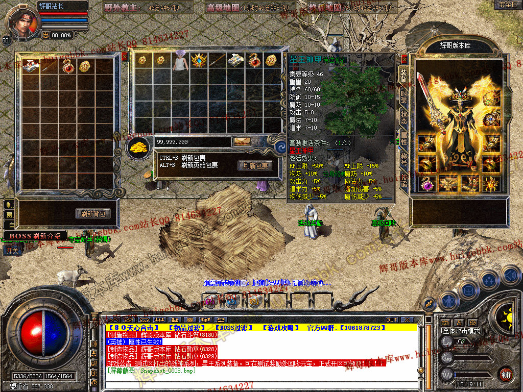 2.行会争霸 开区3天后每晚20-21点 此BOSS必爆战神系列,星王系列爆率极高