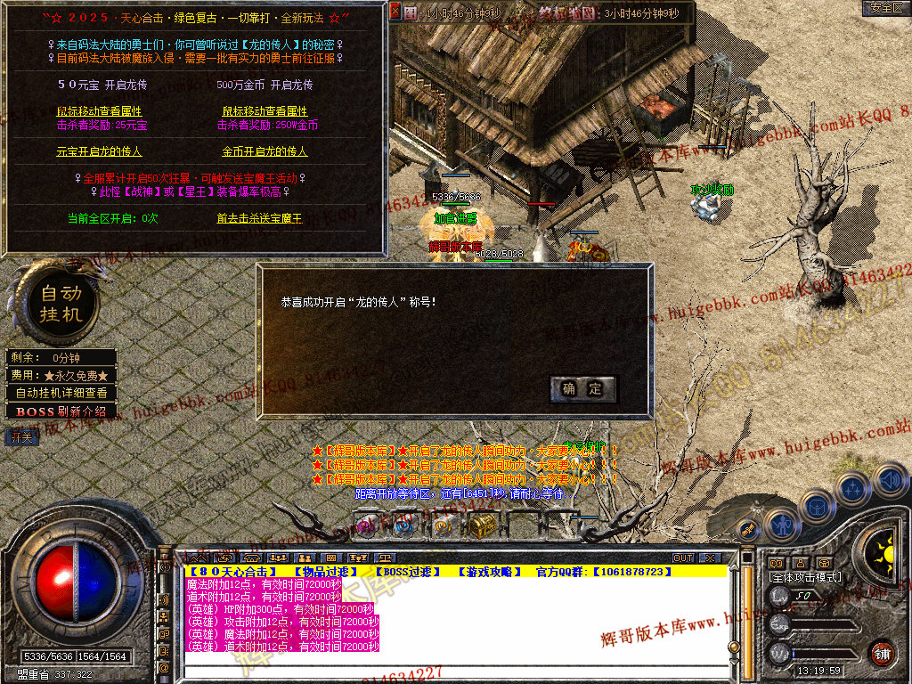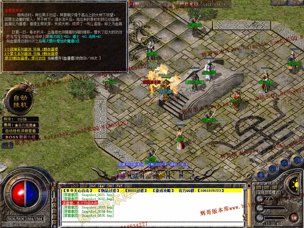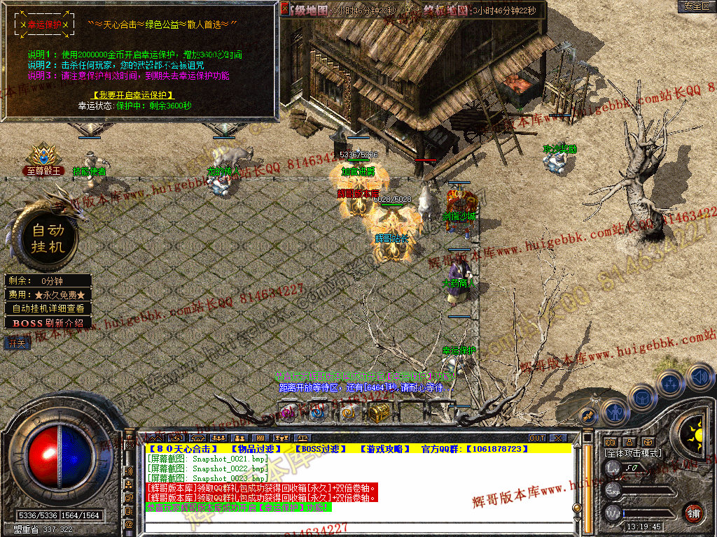 自动挂机:本服只要开启自动挂机10步之内有人就会自动飞随机无间隔!!此功能为了让挂机玩家不在担心挂机被杀装备被爆!
