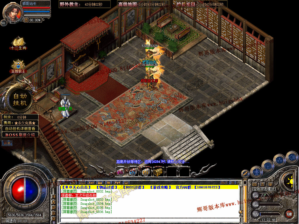 2.开区第2天中午12点开放盟重老兵NPC各大高级地图。