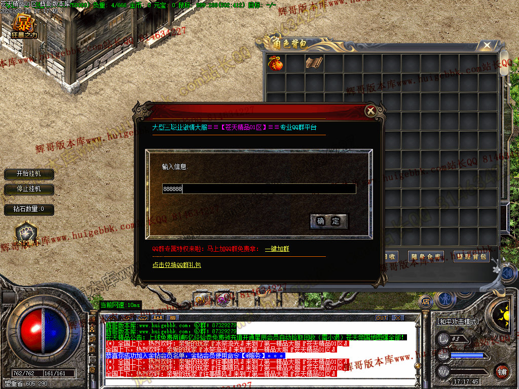 4.增加挂机按钮,增加终级回收和生肖奇门回收等等
