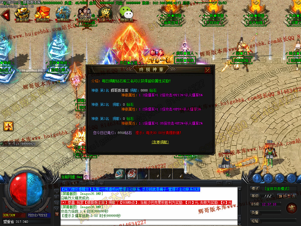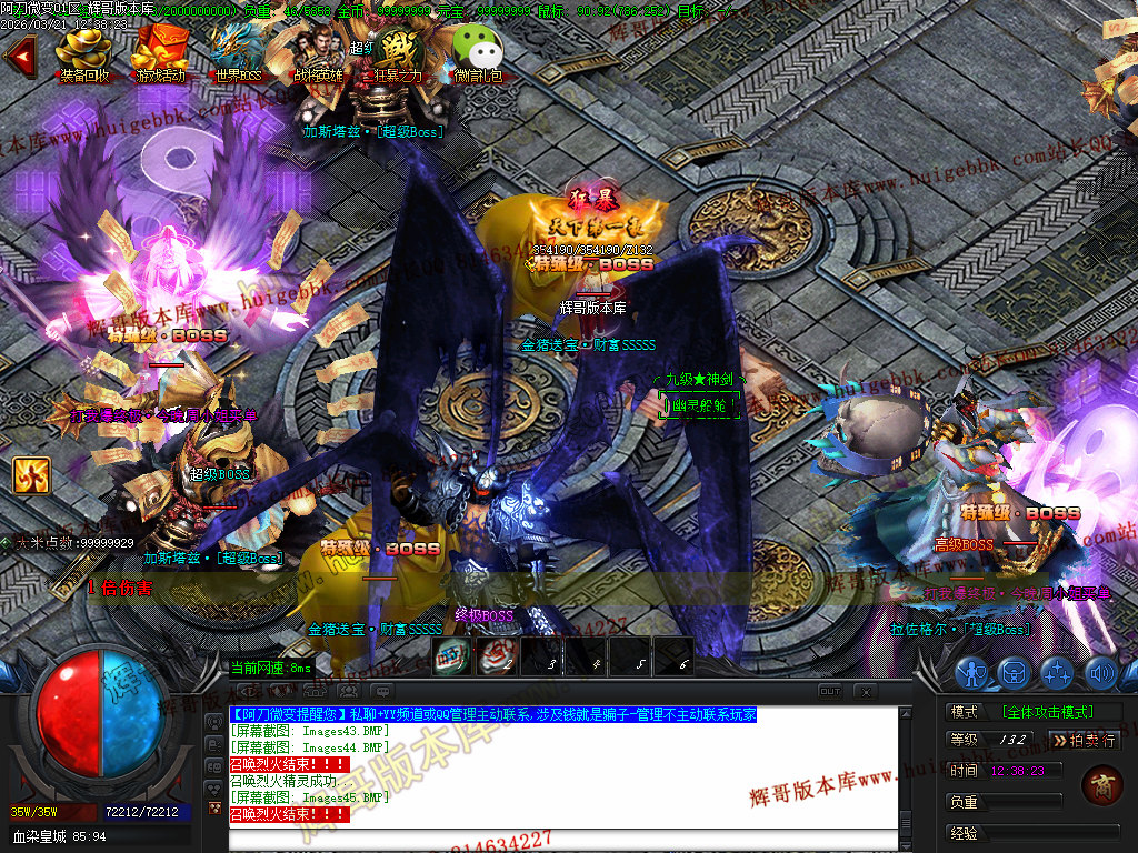 【游戏简介】:-所有BOSS均有爆终极的可能,所有BOSS血量越高,暴率越高.新区老区暴率全部统一无差别.