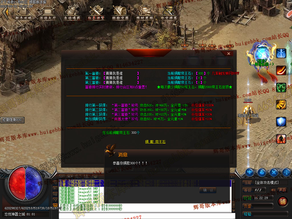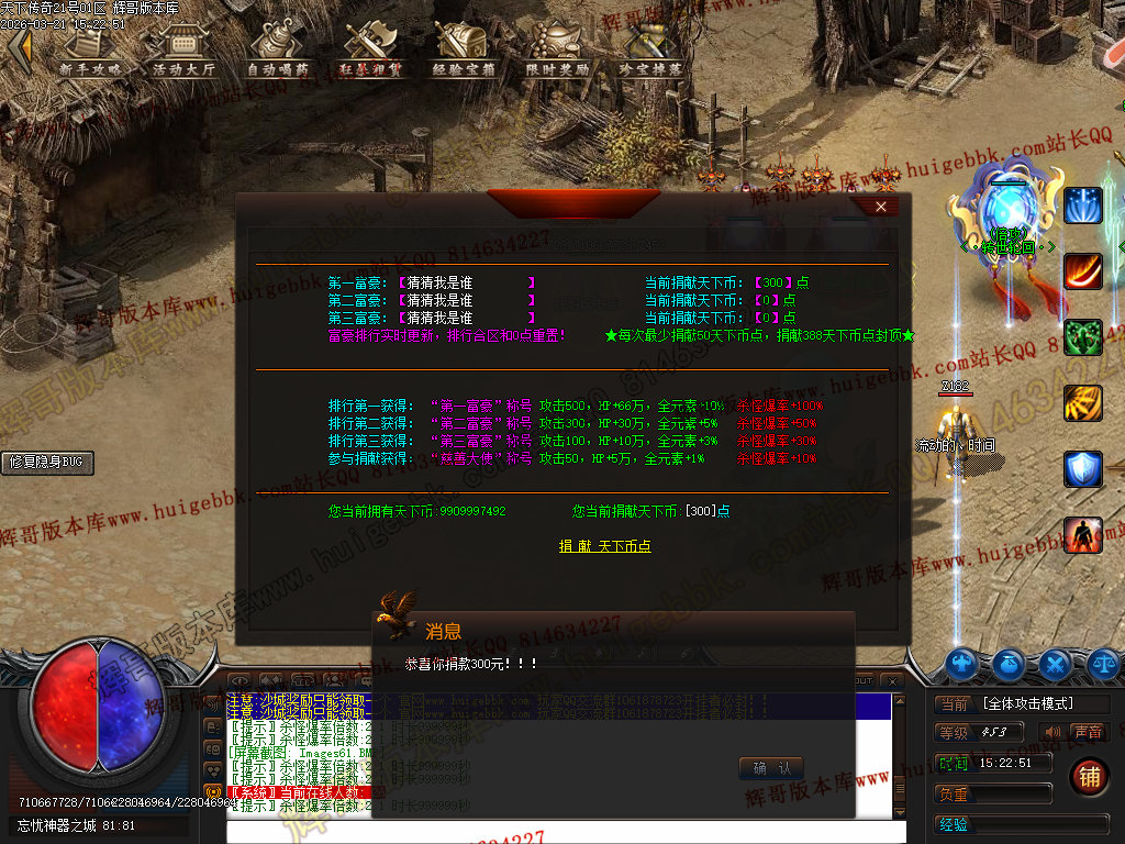 如果发现影响开区的大问题,可联系站长进行免费修复,细节问题自己处理不负责细节问题,