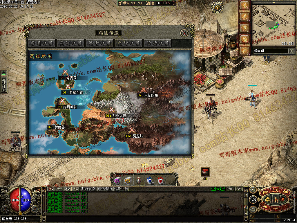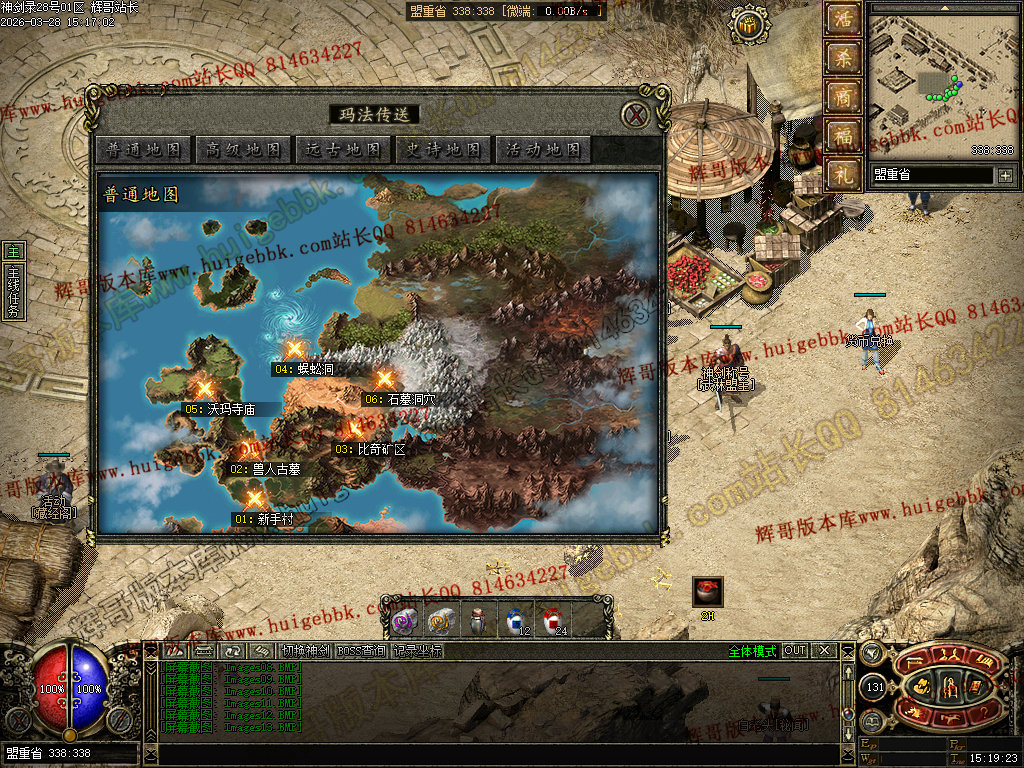 虎卫堂:从土城右下角的NPC六面神石传送到新手村。