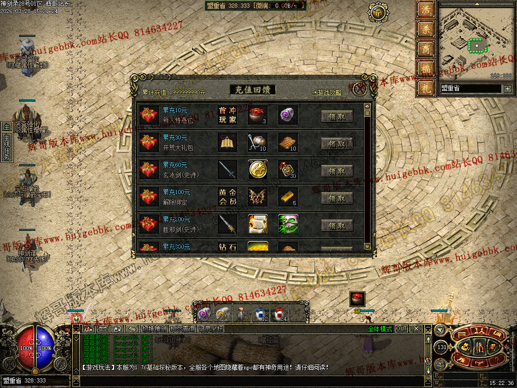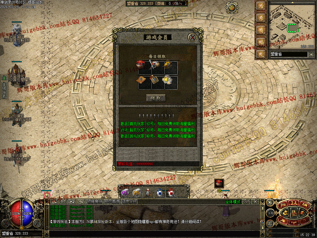任务领取:领取福利礼包、充值回馈、每日任务等。