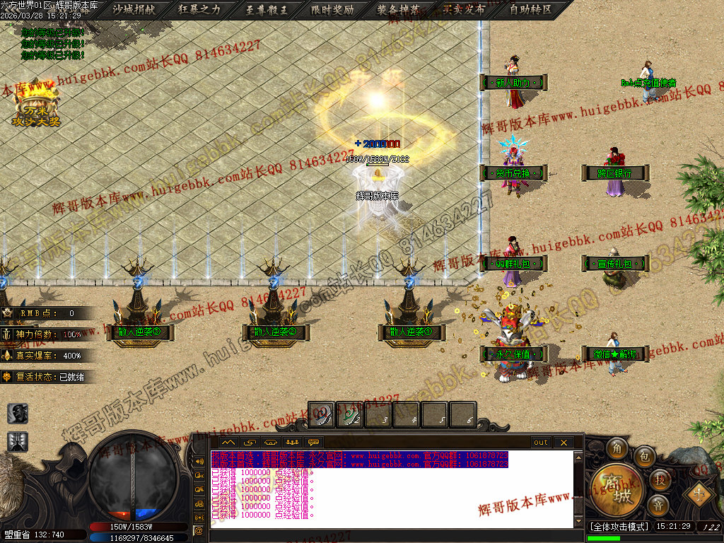 十区  测试  21:30   正式  22:30   爆率 + 280% BOSS刷新时间60分钟