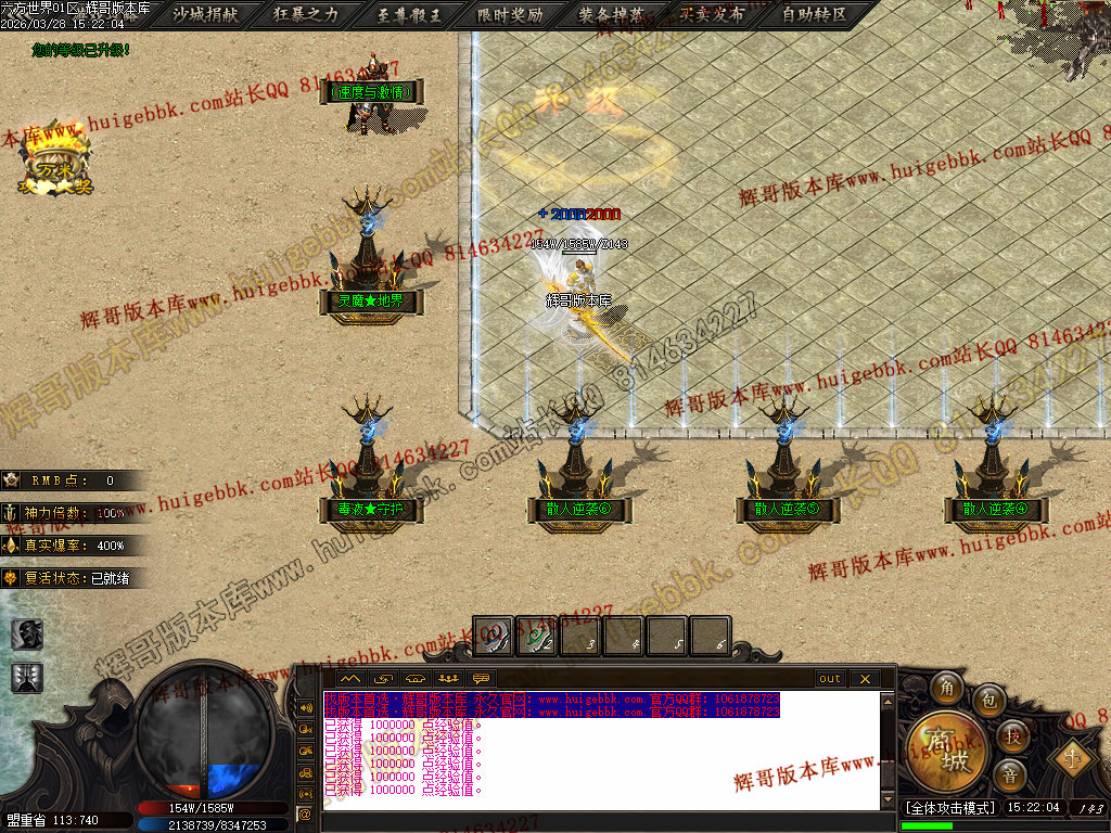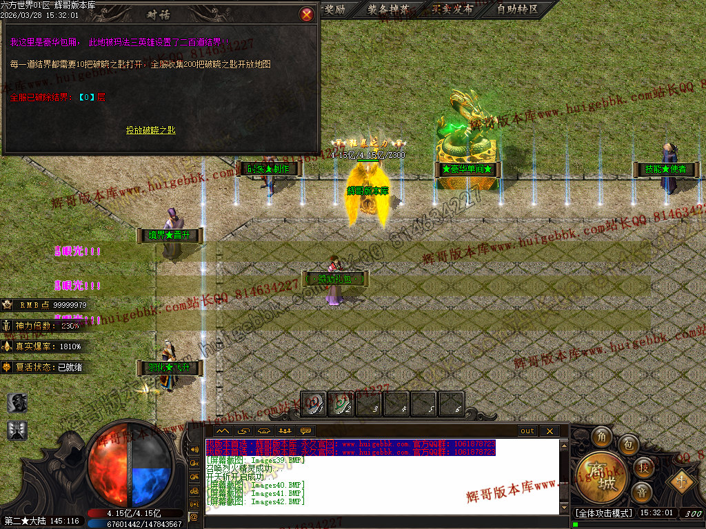 四区  测试  10:30   正式  11:30   爆率 + 160% BOSS刷新时间78分钟