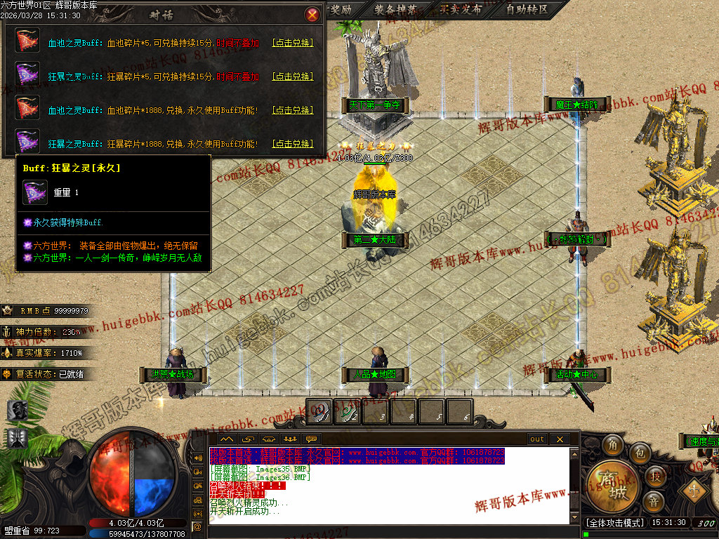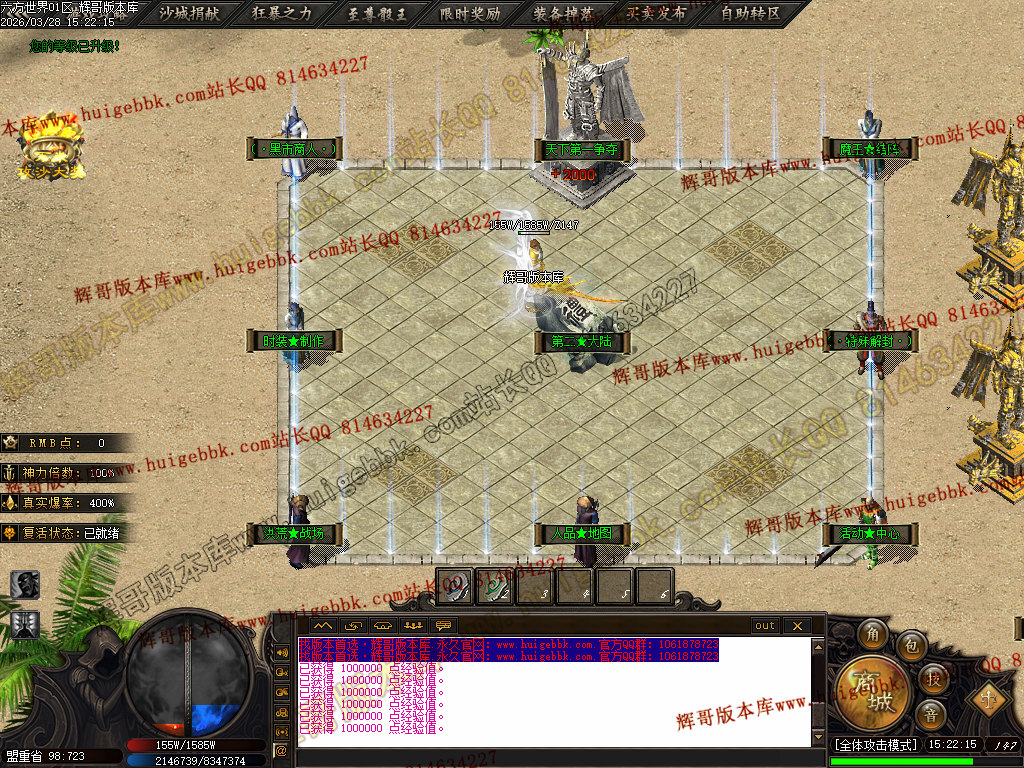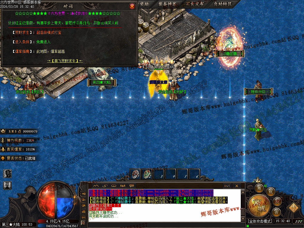 六区  测试  14:00   正式  15:00   爆率 + 200% BOSS刷新时间72分钟