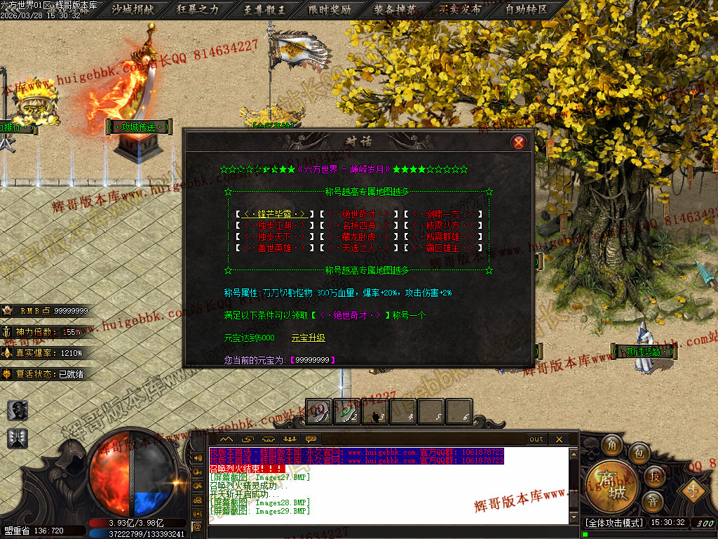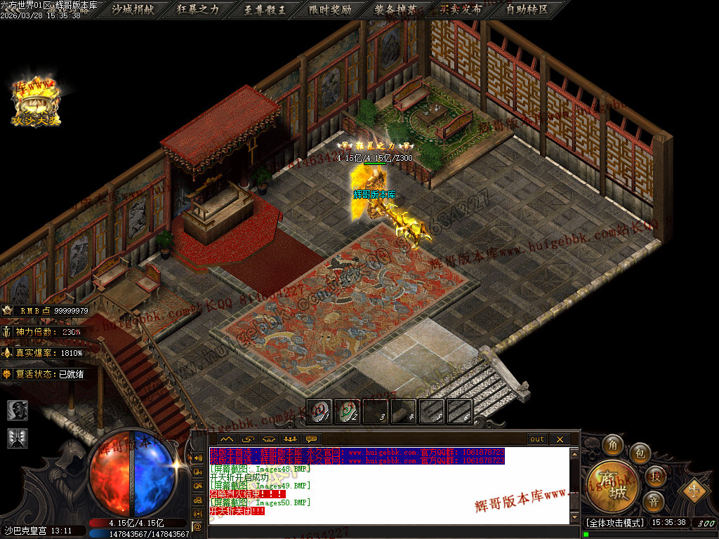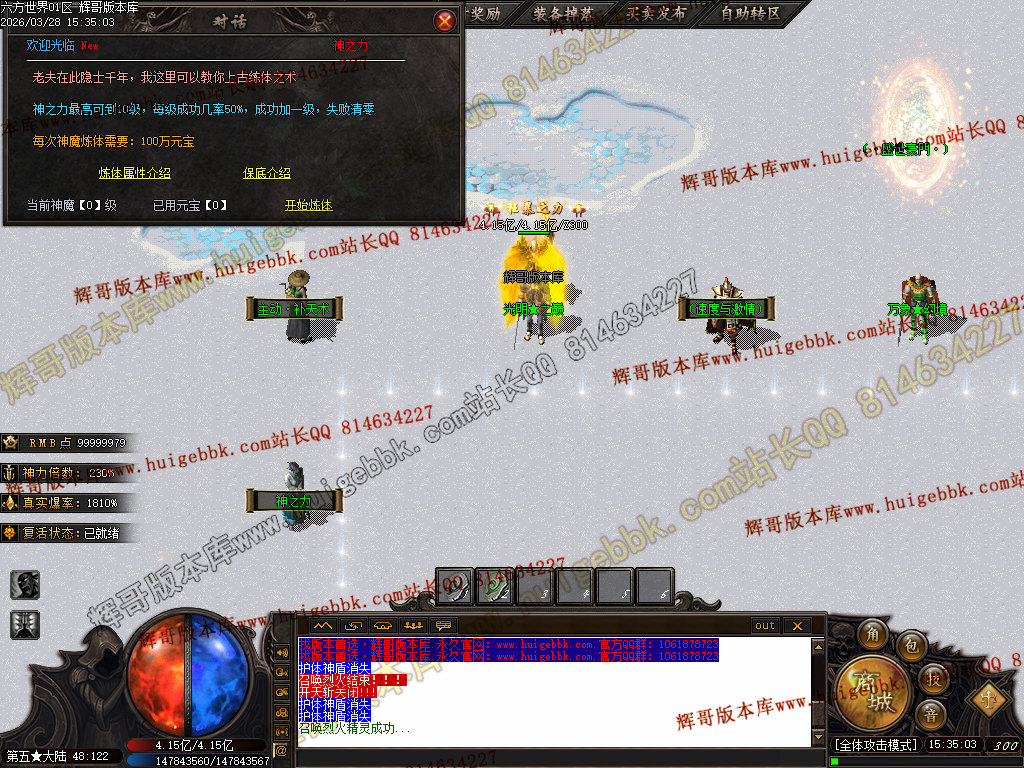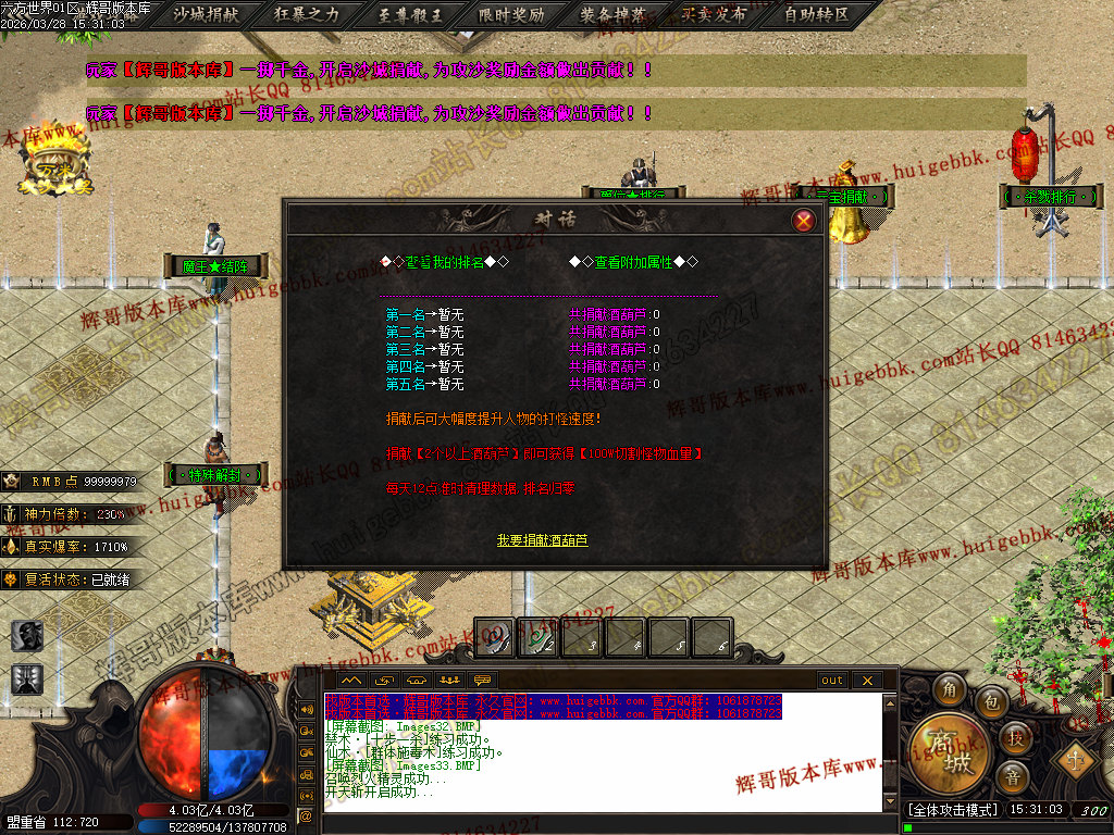 5.【神爷赞助】 充值数700 或 500修炼手镯 领取 爆率+500  全属性+8888  全元素+ 10%  几率切割怪物 6%生命 全屏吸怪附带绿毒范围20*20