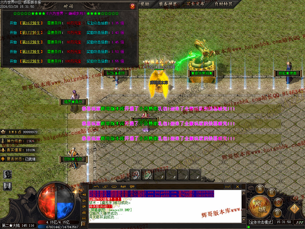 三、    【货币兑换NPC】: 1元 = 10万元宝 + 1充值数