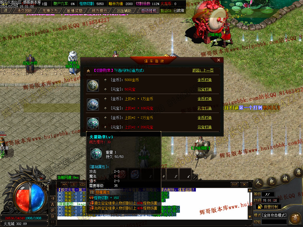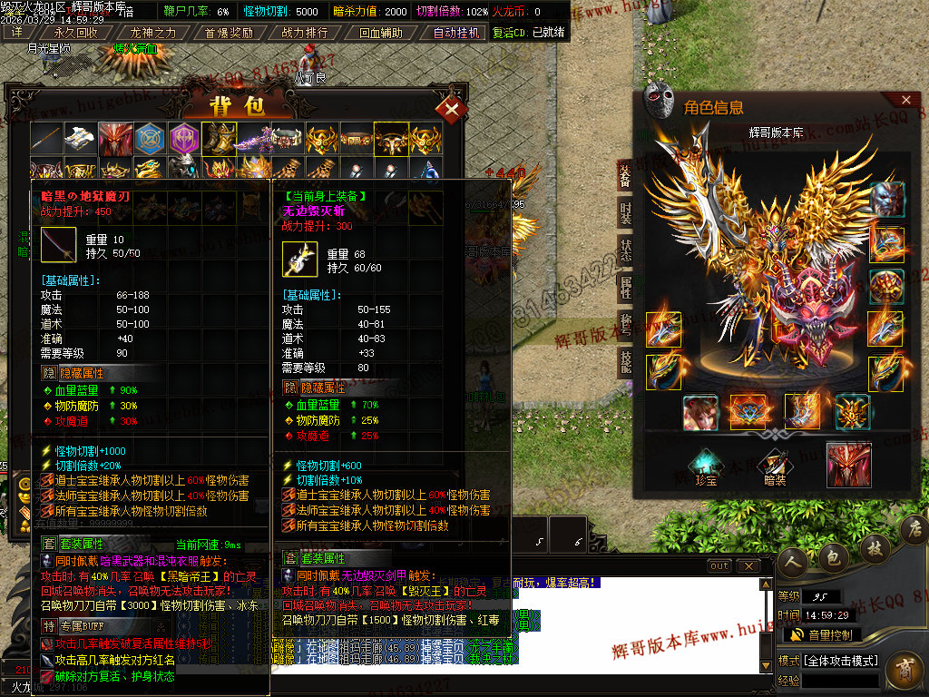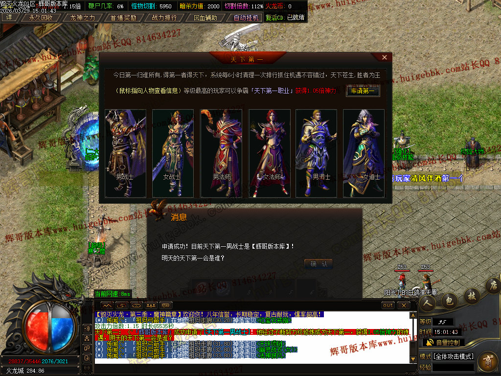 战士(PK超猛):四级烈火剑法,开天斩,逐日剑法攻击高的一逼(店铺有售)攻速快体验感强。
