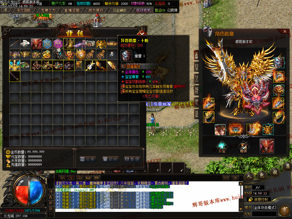 盟重省坐标344 333 藏珍老人NPC可进入藏珍阁 藏珍阁一层合成生肖 二层合成高级特殊四格以及星座洗练增加属性! 三层可升级装备属性!