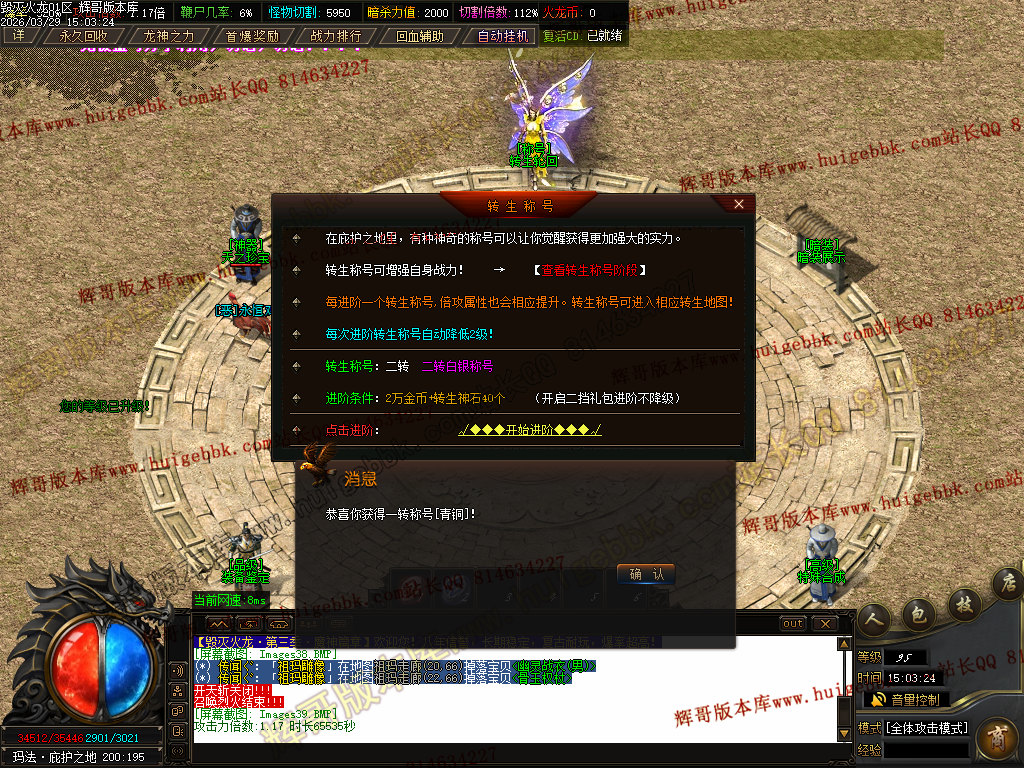 勇士勇士称号赠送:全属性+20%,提高打怪爆率,超爽哟