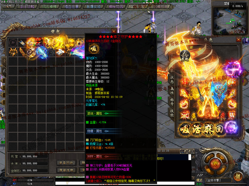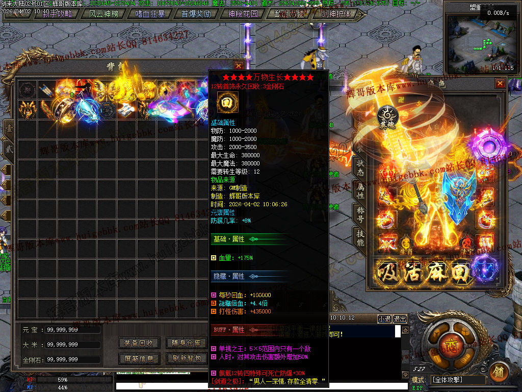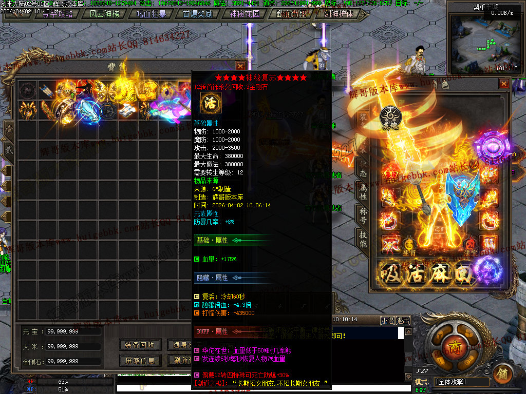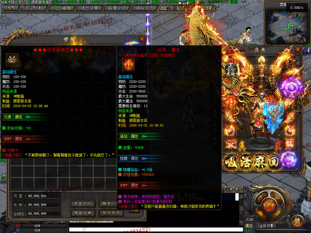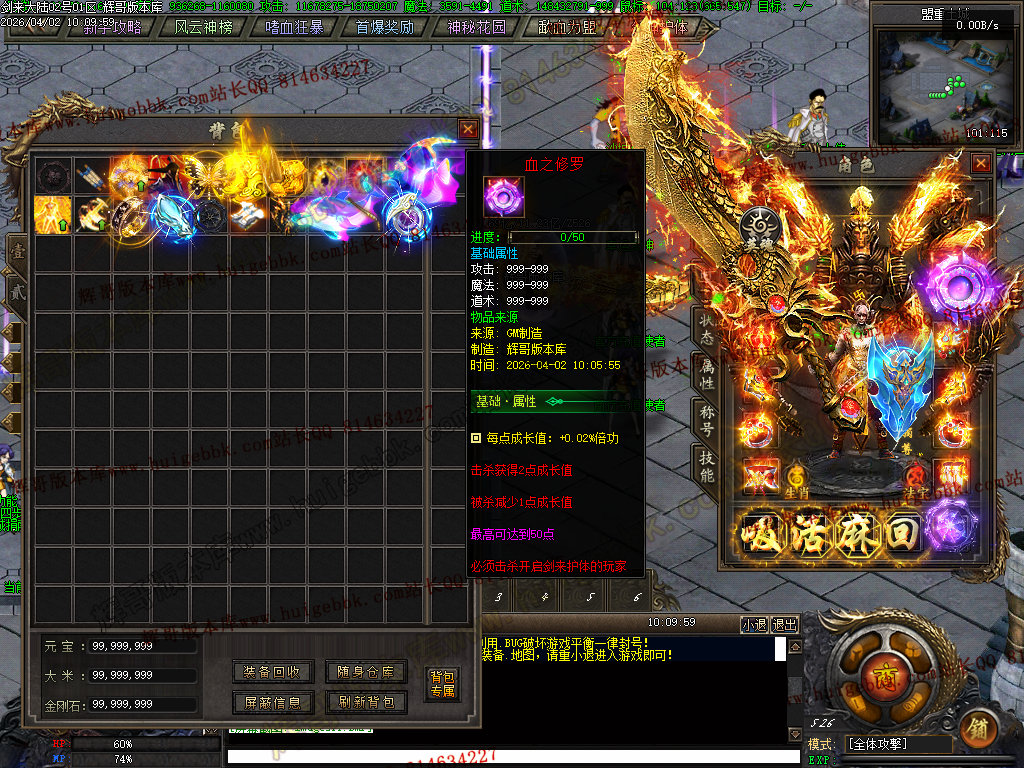 血之修罗(只需66金刚石一键满)升满后增加人物倍功,打架抢怪必备神器