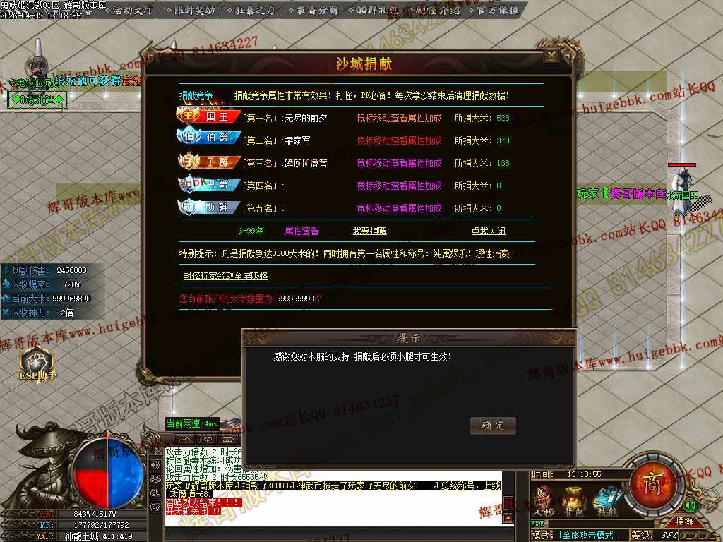 如果发现影响开区的大问题,可联系站长进行免费修复,细节问题自己处理不负责细节问题,