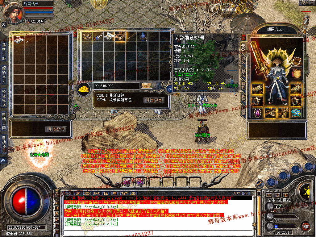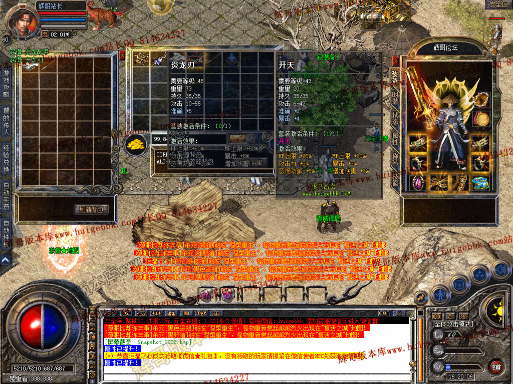 上古神器玩法:打到对应装备激活即可可获得牛逼属性加成。