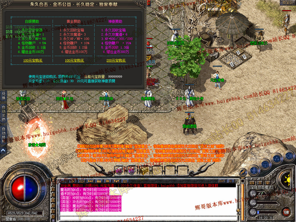 【元宝充值】:1:20充值 永久保值 游戏主要以金币消耗为主.无任何暗坑,无任何隐藏。
