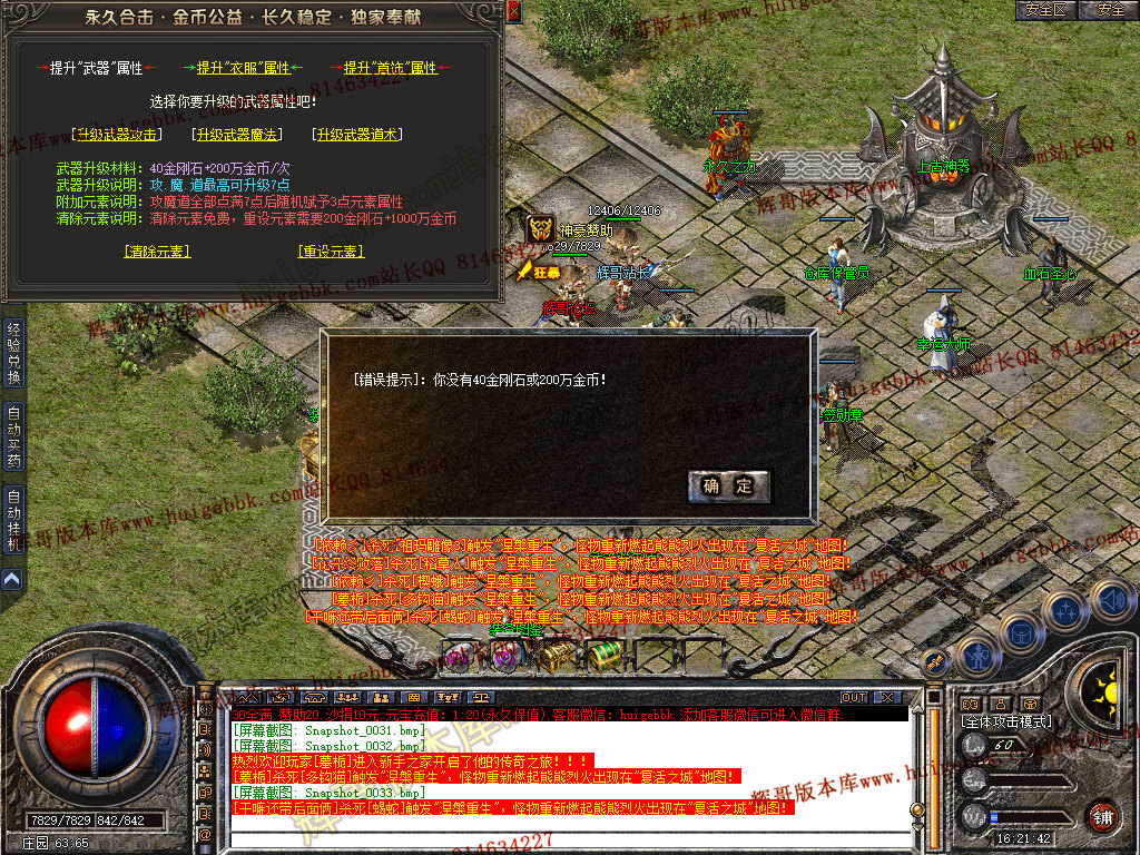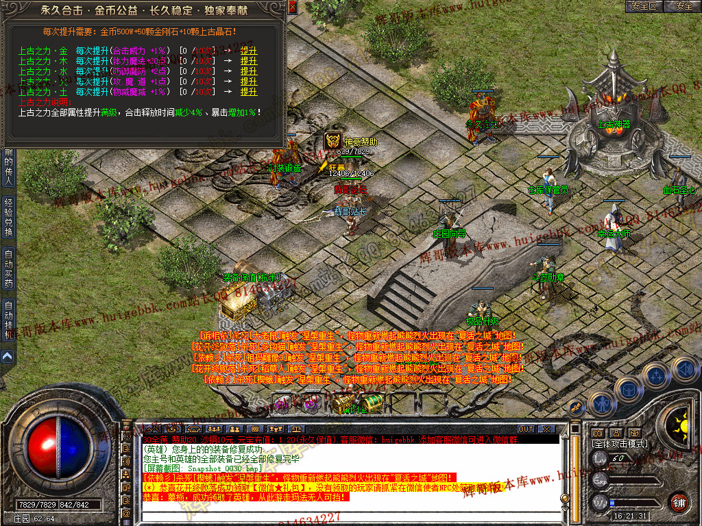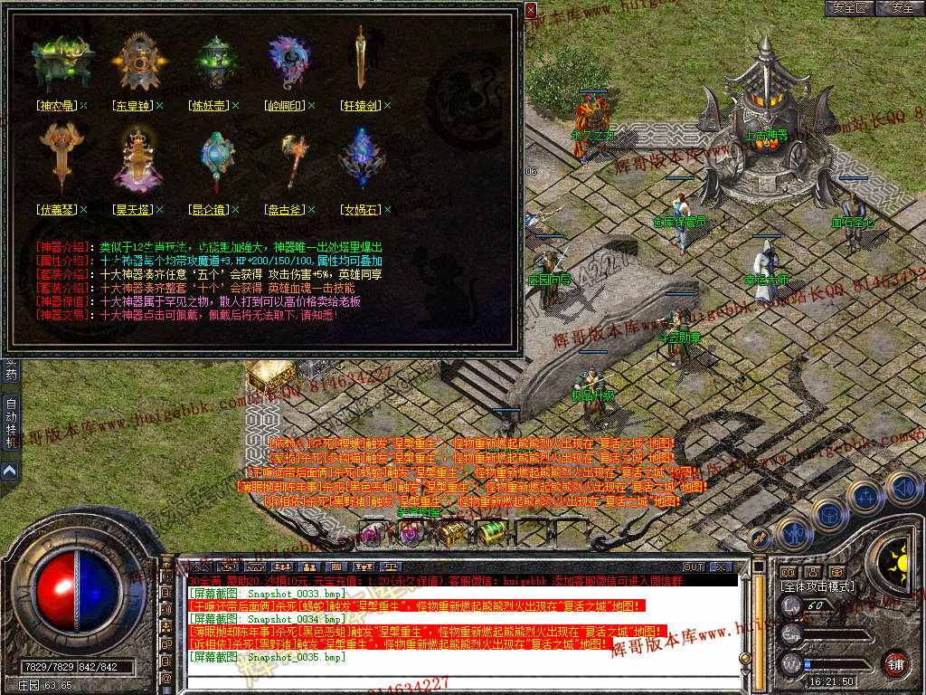复活城地图 所有怪物被打死 30%的几率进入复活城 全新偷怪玩法。