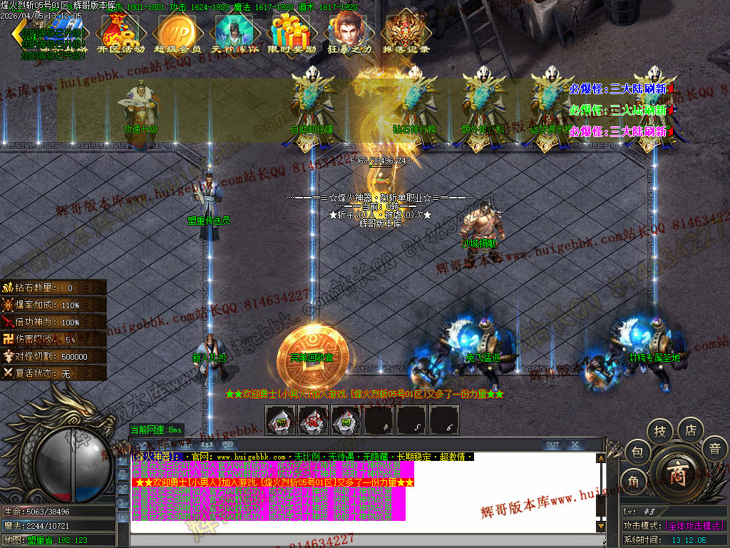 本服最新推出鞭尸系统,几率使怪物复活,多打一些boss哦!