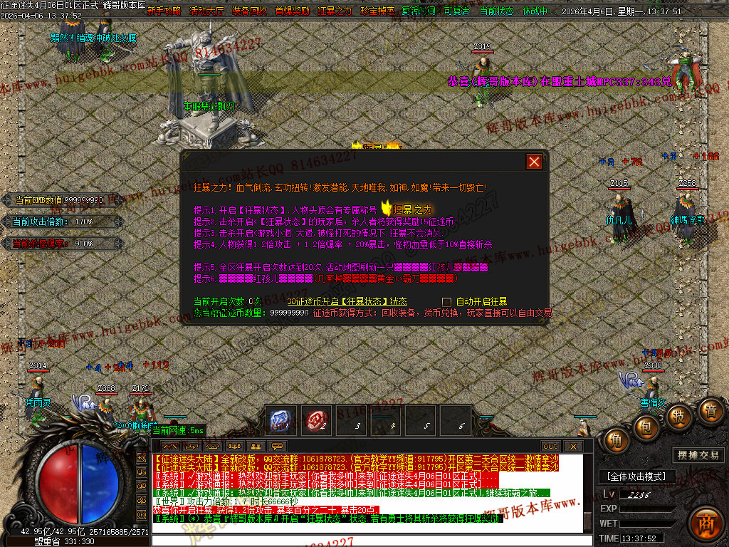 如果发现影响开区的大问题,可联系站长进行免费修复,细节问题自己处理不负责细节问题,