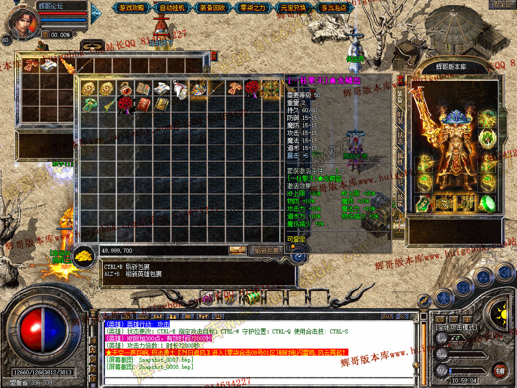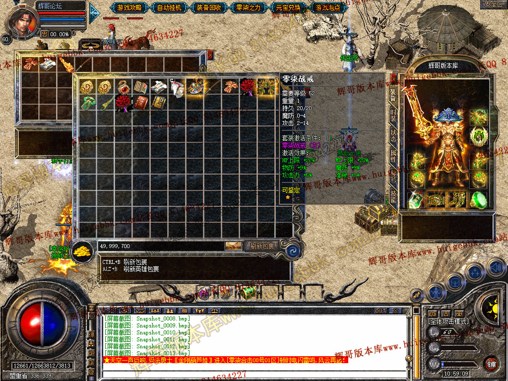 零柒合击告知:游戏内无装备升级,极品装备全部靠游戏打怪爆出.最高极品+5.可以属性转移.很保值