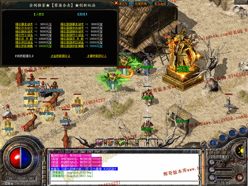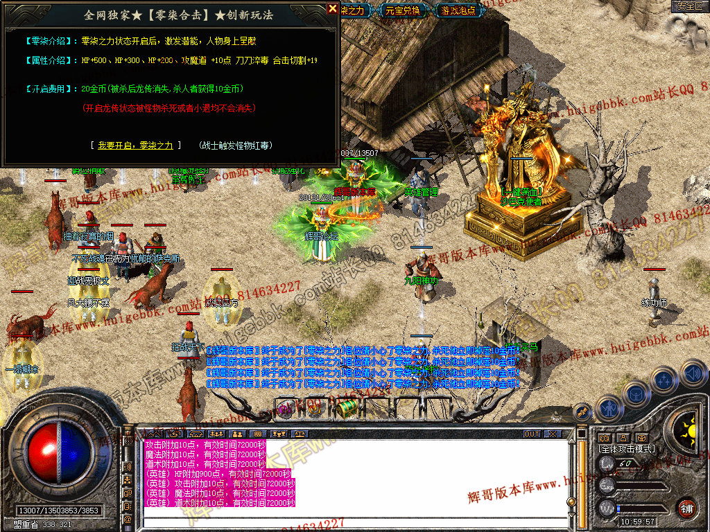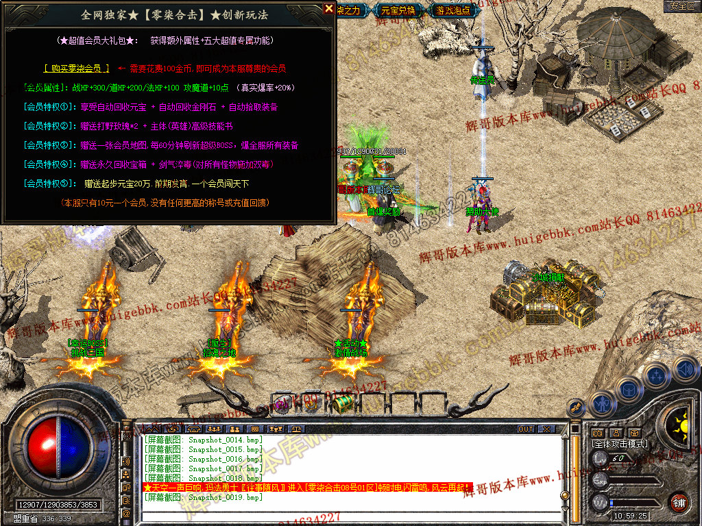 神豪消费:100金币开赞助、200金币沙捐、20金币开狂暴100金币吃苹果 上线弄2套 武器爆3项链爆5 等级65 (直接充值1000元金币起飞)