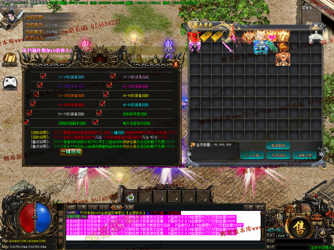 [⒈散人玩法]> <快速进服,多打限时,参加活动,累计积分领取回馈,10阶以上都会掉落终极,脸好完爆一切