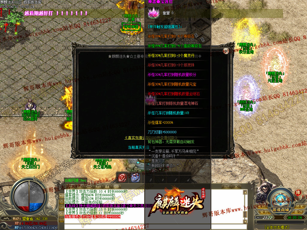 3、后期打高级装备回收混沌神石。5个混沌神石=1RMB点 永久回收(高级货币兑换NPC回收,土城346.336)