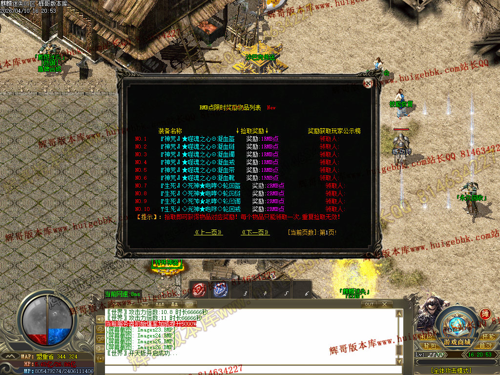 1、抢限时奖励首爆即可获得RMB点奖励。100多件限时奖励装备。