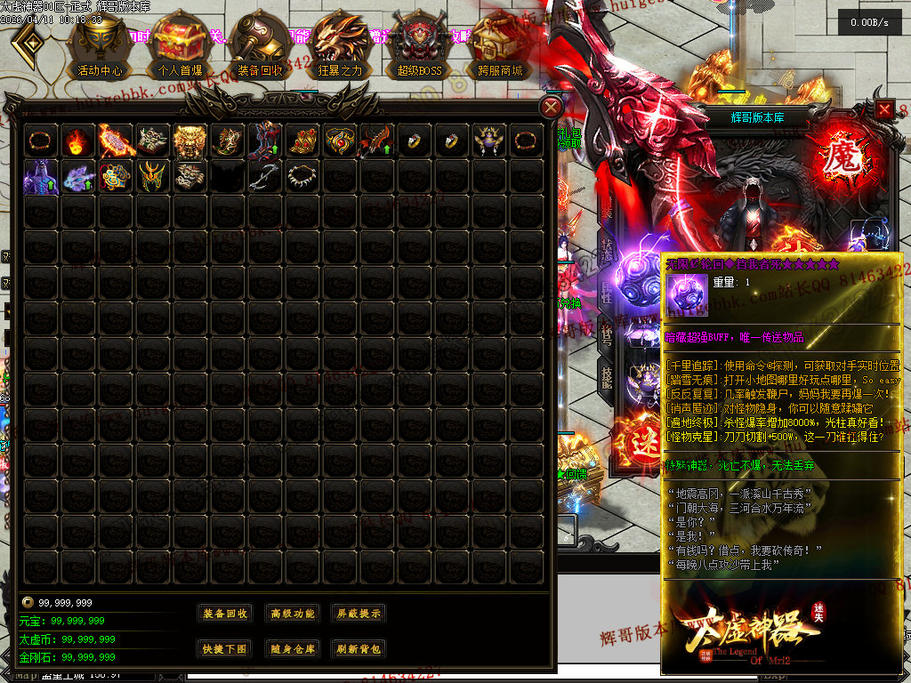 本服各个环节数据设计衔接紧密,长期版本,请不要与快餐、激情服来做比较,经久耐玩,散人可以打到一切!!!(专为散人打造一片传奇净土)