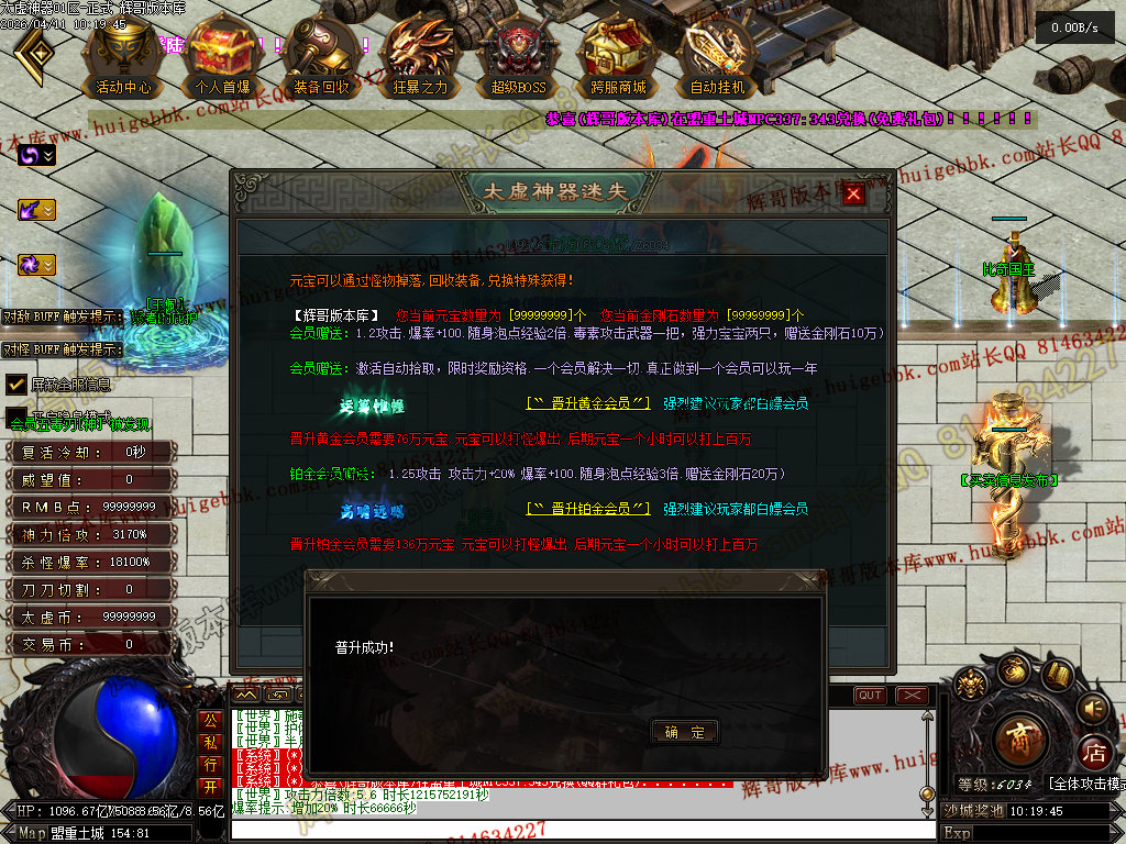 上线第一时间领取Q群礼包礼包码:88888,升级会员称号,把土城所有能升级点东西都升级满,再到土城点左边下新手地图刷怪,刷货币跟等级丹