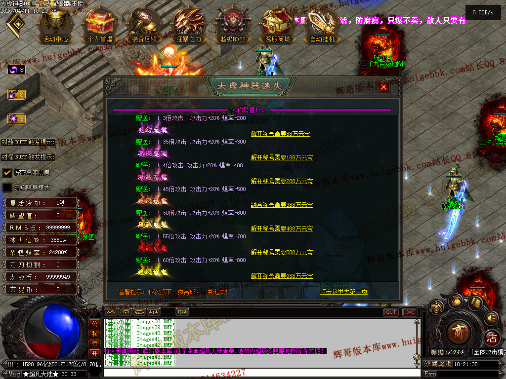 等级升到1500 转生到30转,特殊四件套直接土城升满,时装 生肖直接升满,下二大陆开启新的旅程
