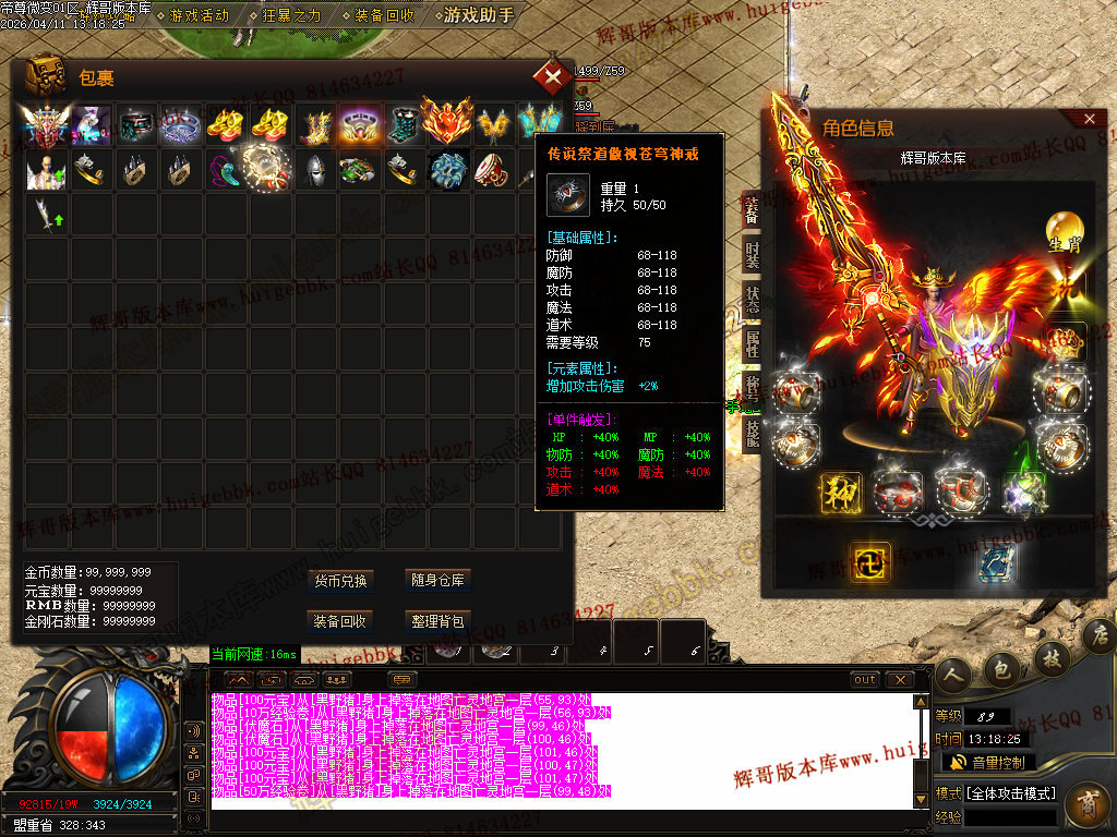 28-267独家帝尊微变特色公益攻速单职业传奇-带假人-SD/ESP插件-自动回收-三大陆-GOM引擎