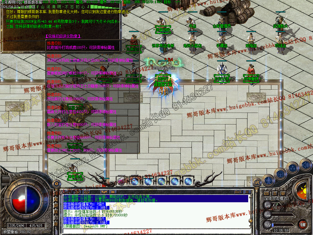 中期:散人地图、烟花之地、神秘玛雅、无间炼狱、魔幻之门可打BOSS ,打装备都可以